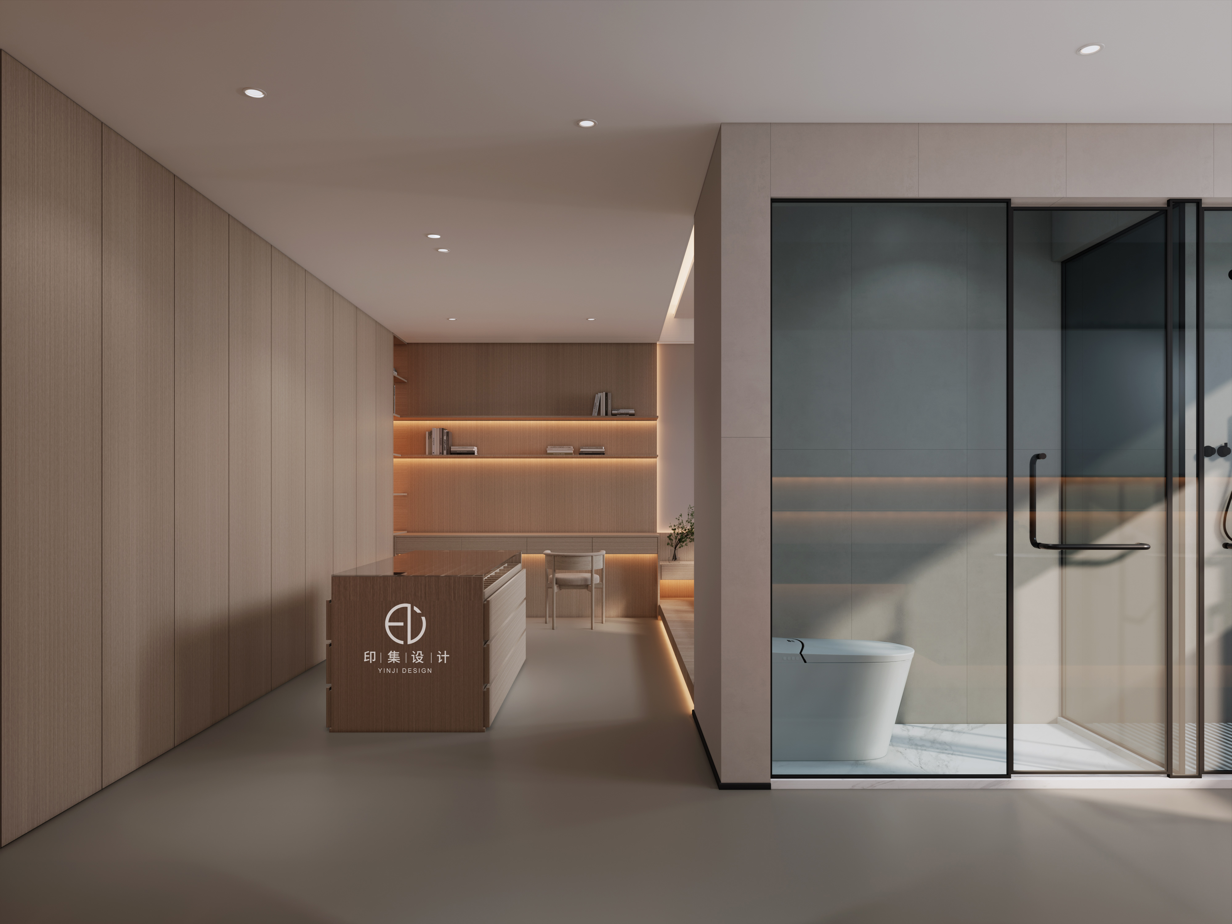 木格随盈灯亮起,这是为包包定制的精美单间。整面无拉手木柜,整洁利落,这是为衣帽打造的私密乐园。超大首饰柜立于主卧空间,装满对美的极致追求。