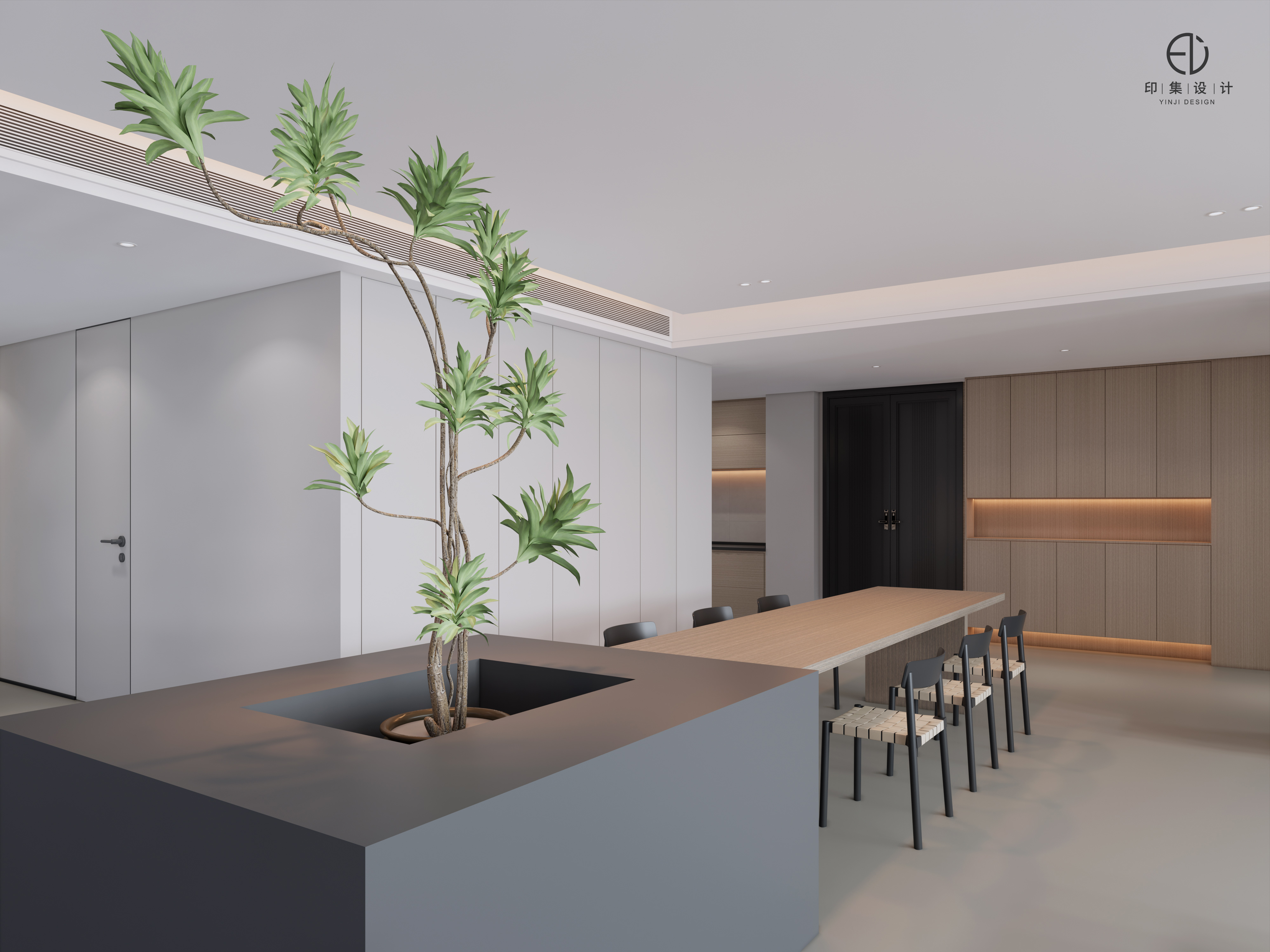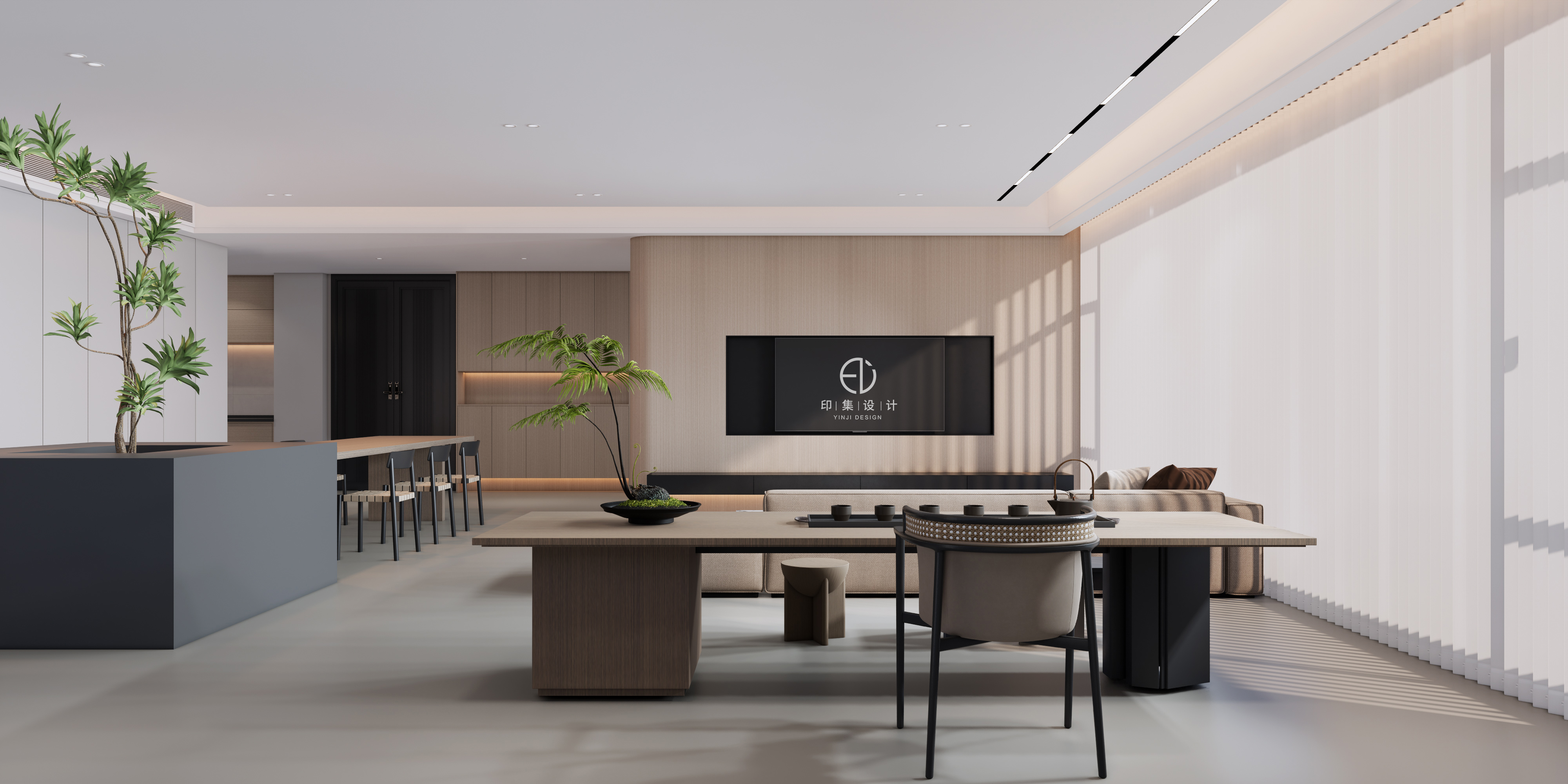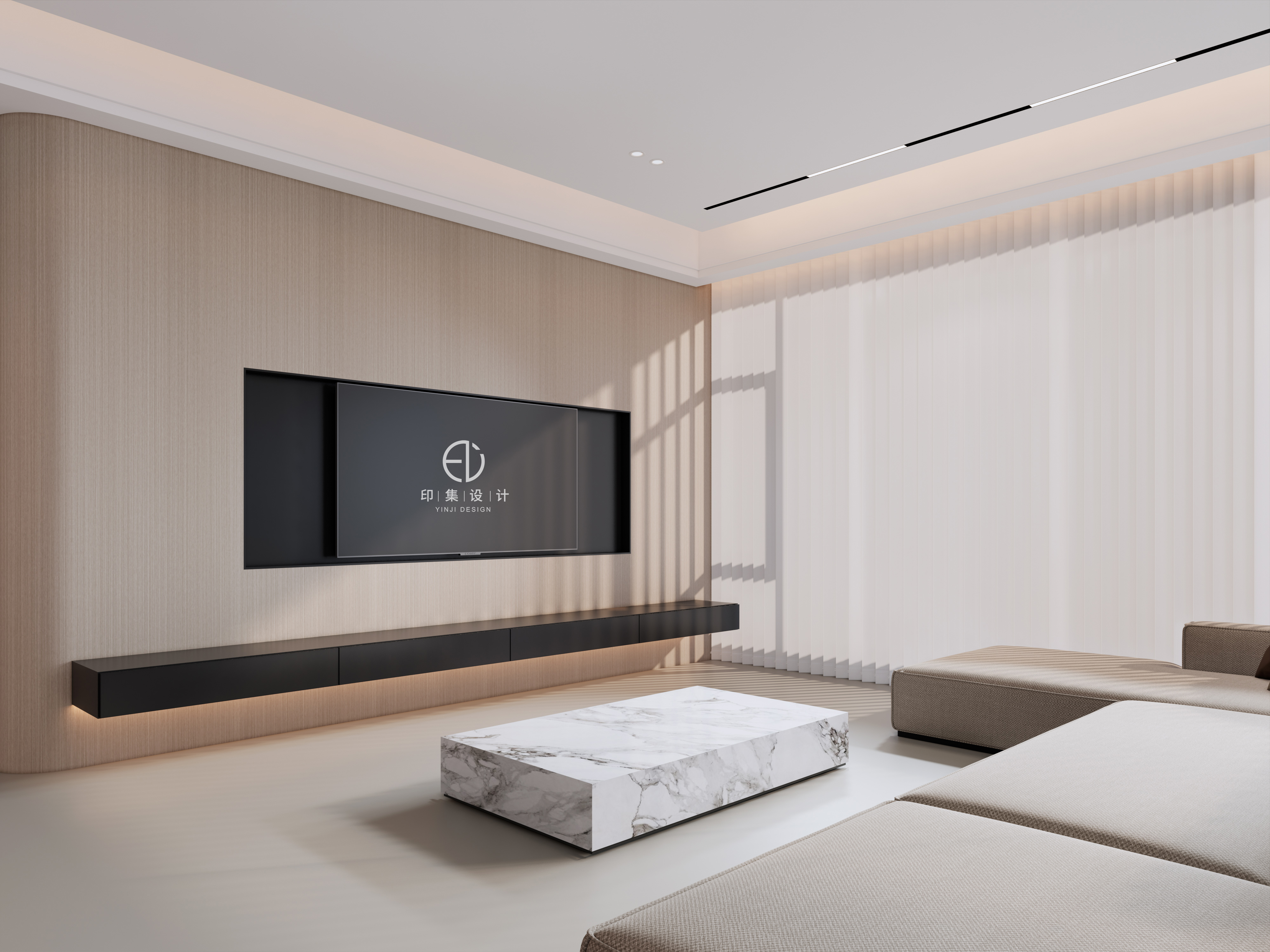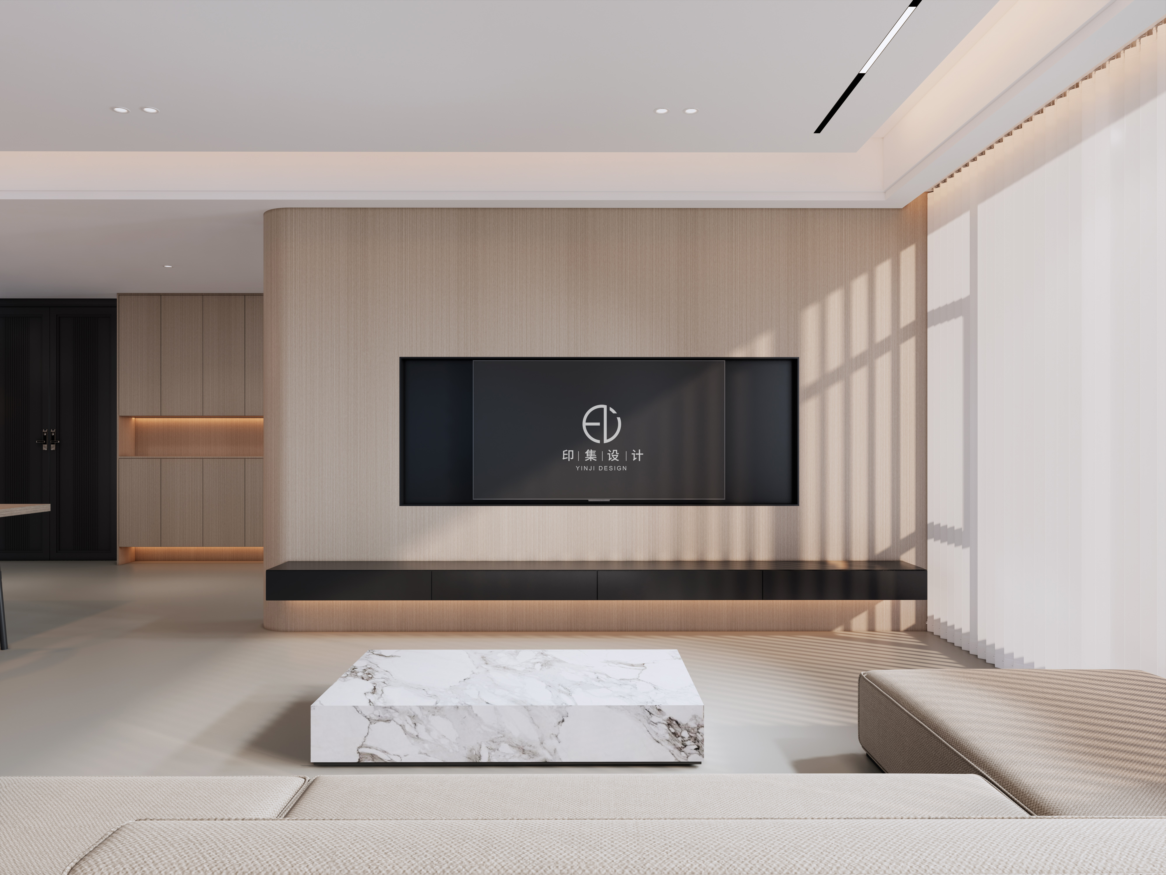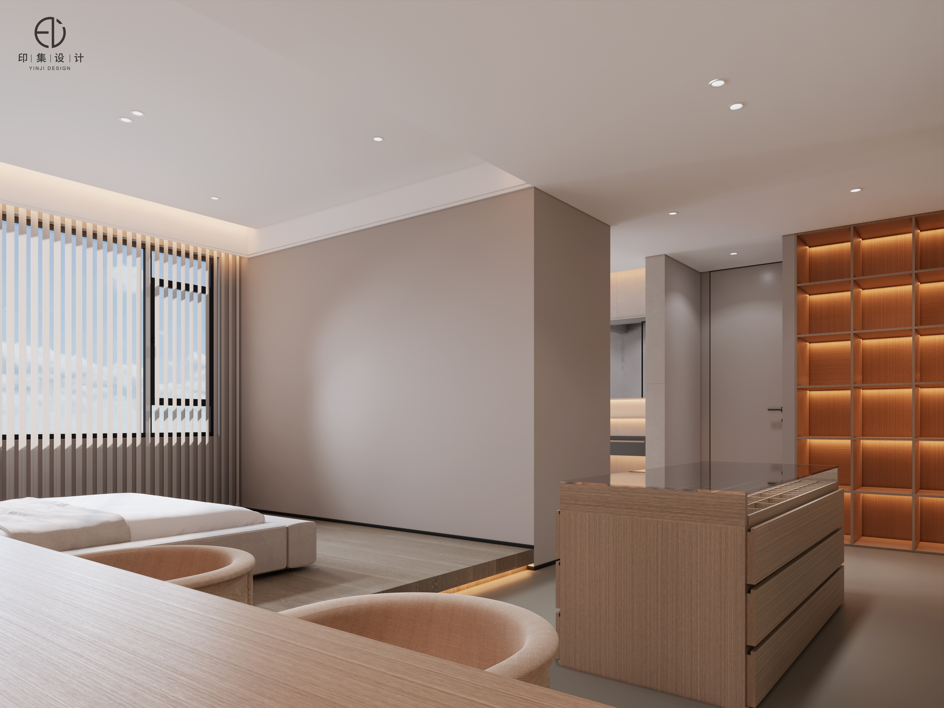 木质双面墙以弧形收边,碰撞出现代时尚的火花,凸显出极简设计的艺术魅力。