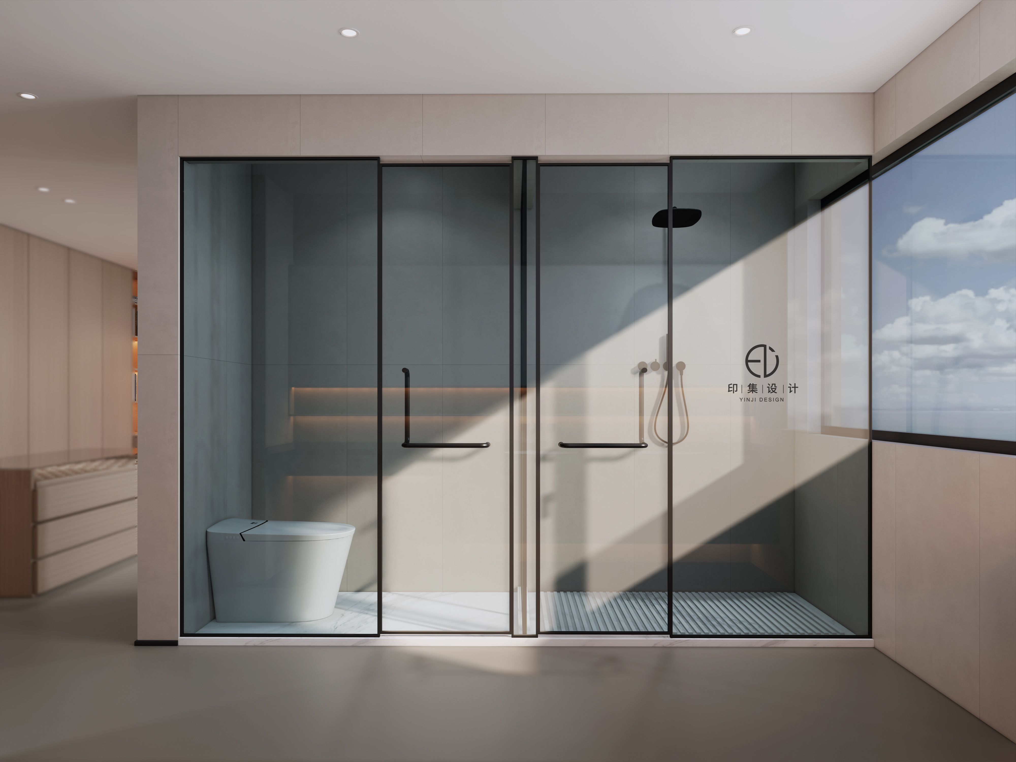 两个独立的玻璃单间区分功能,实现主卫干湿分离。光透过窗,洒进主卧,仿佛能闻到阳光的自然干香。