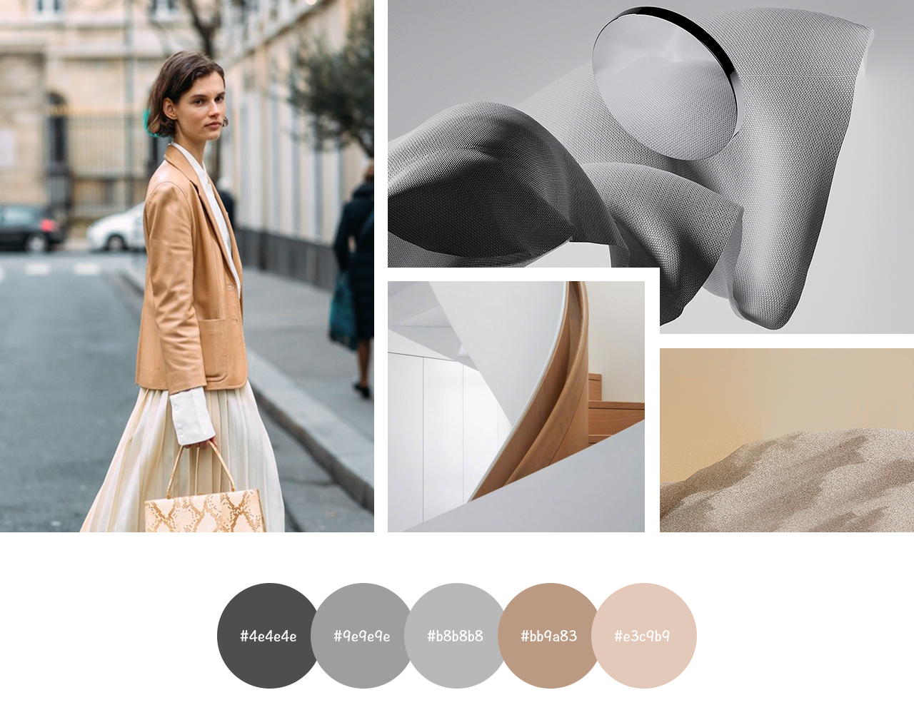 选用黑、白、灰经典三色为主色彩基调,深沉、庄重而又和谐,明快淡雅而不单调,再以咖色来提亮和点缀,整体色调更加精致、透亮,有一种简约感和高级感。