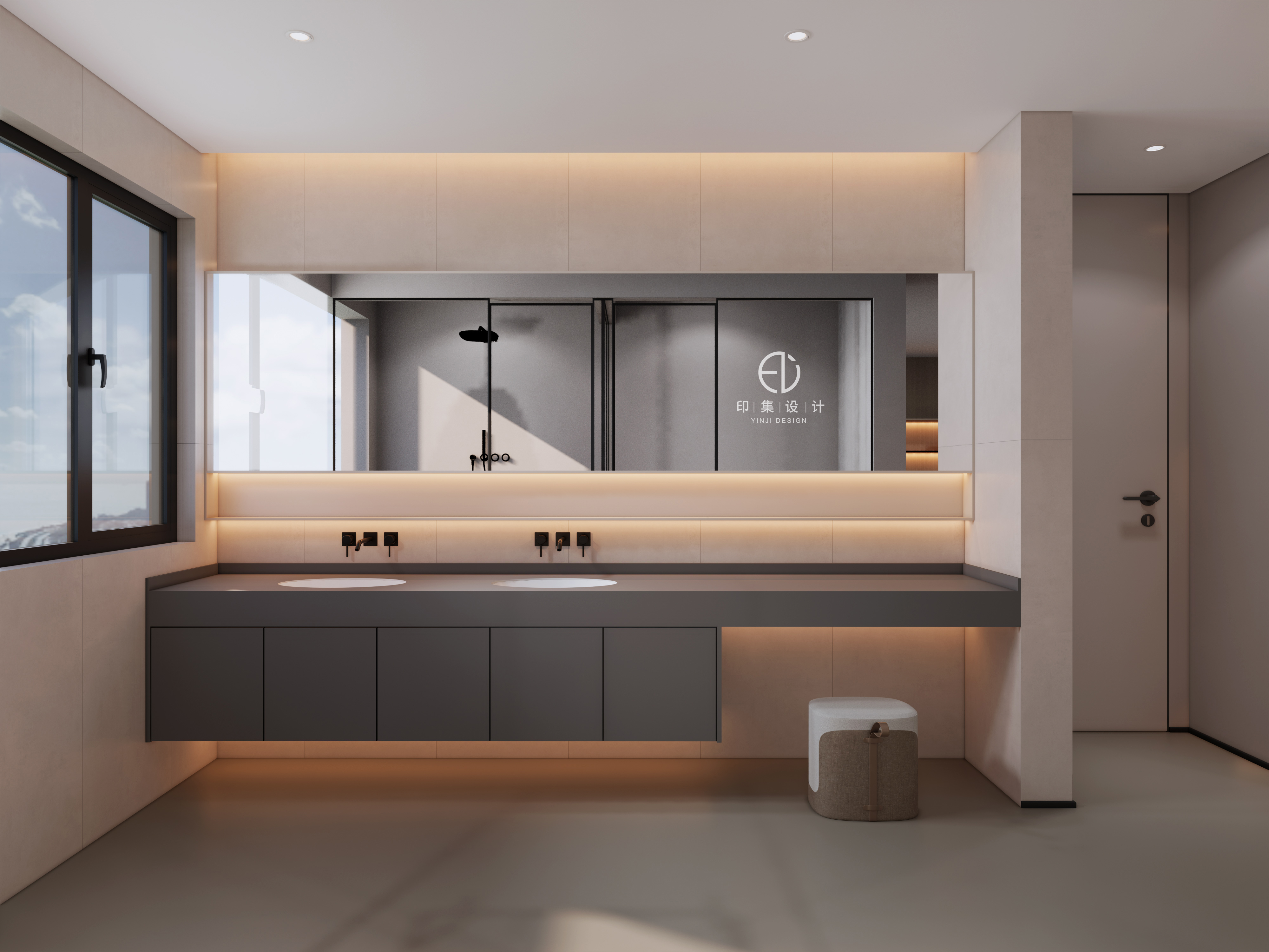 双人洗漱台,宽敞大气。嵌入灯带,温馨浪漫,不徐不疾,装扮出最美的自己。