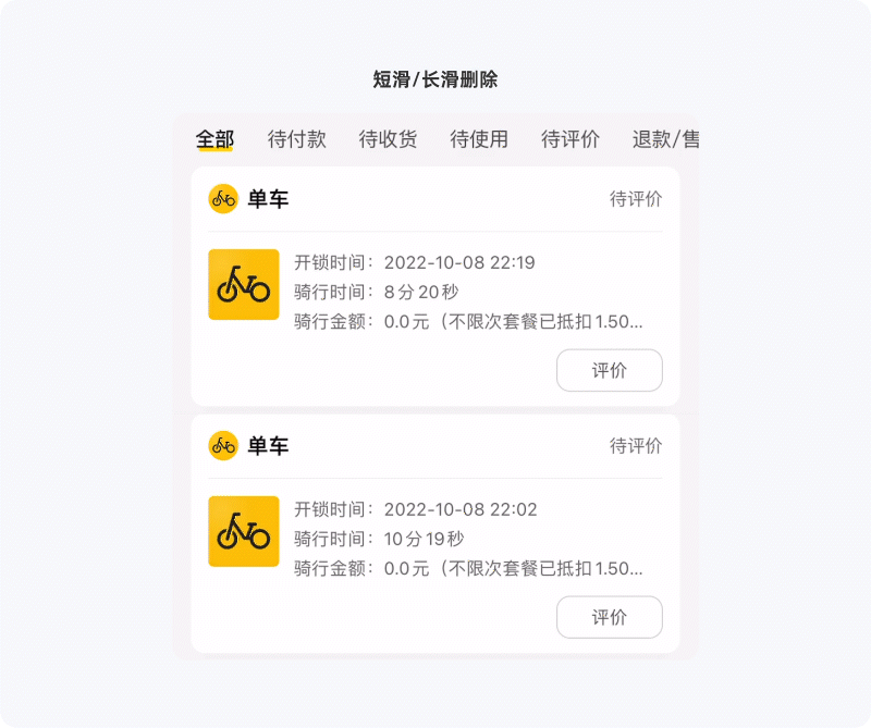 卡片给人最直观的感觉就是可以操作,它不用箭头、按钮或超链接等引导性的视觉元素提醒,节省了一定的页面空间,还有着更大的操作热区,无需做到精准点击。卡片式设计很容易融入各种交出手势,如单击、双击、长按、拖动、滑动等,为用户提供更多便捷的操作。