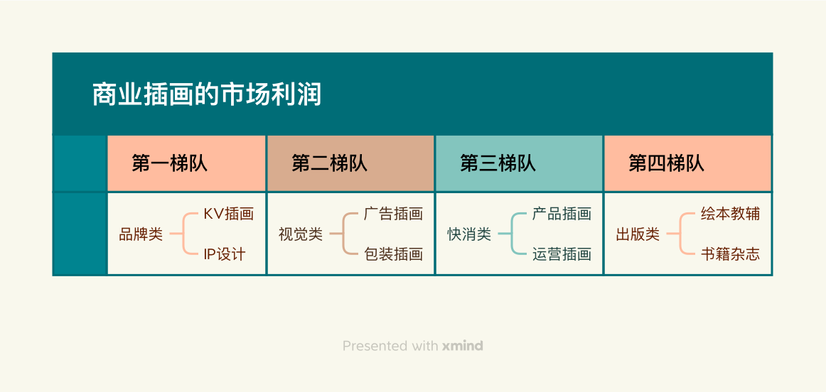 商业插画发展到今天,已广泛应用在各行各业,其中最常见的有品牌类、广告类、包装类、产品类、出版类等。而市场行业对个体收入的影响巨大,身处某一行业的插画师却不易察觉。下面我将从利润空间的高低,去分析与之对应的商业插画类型。