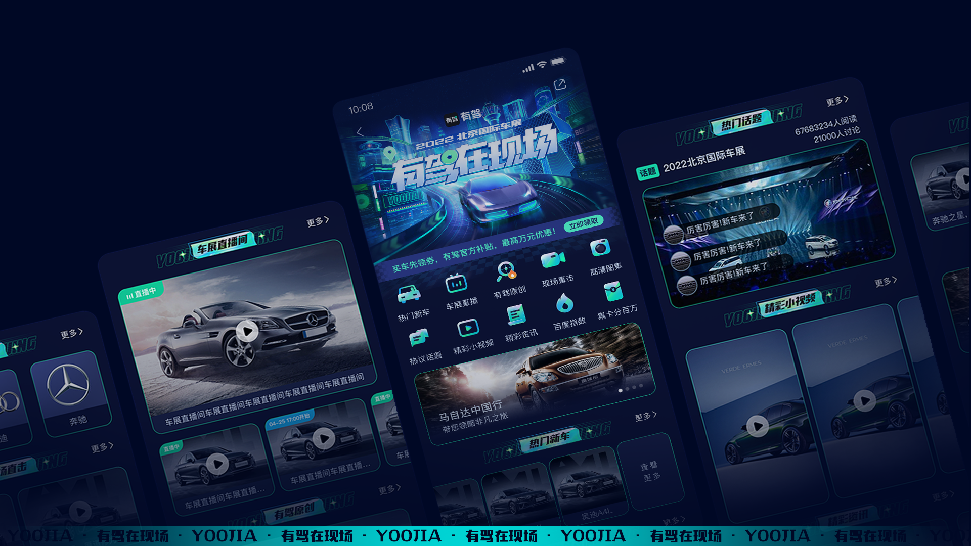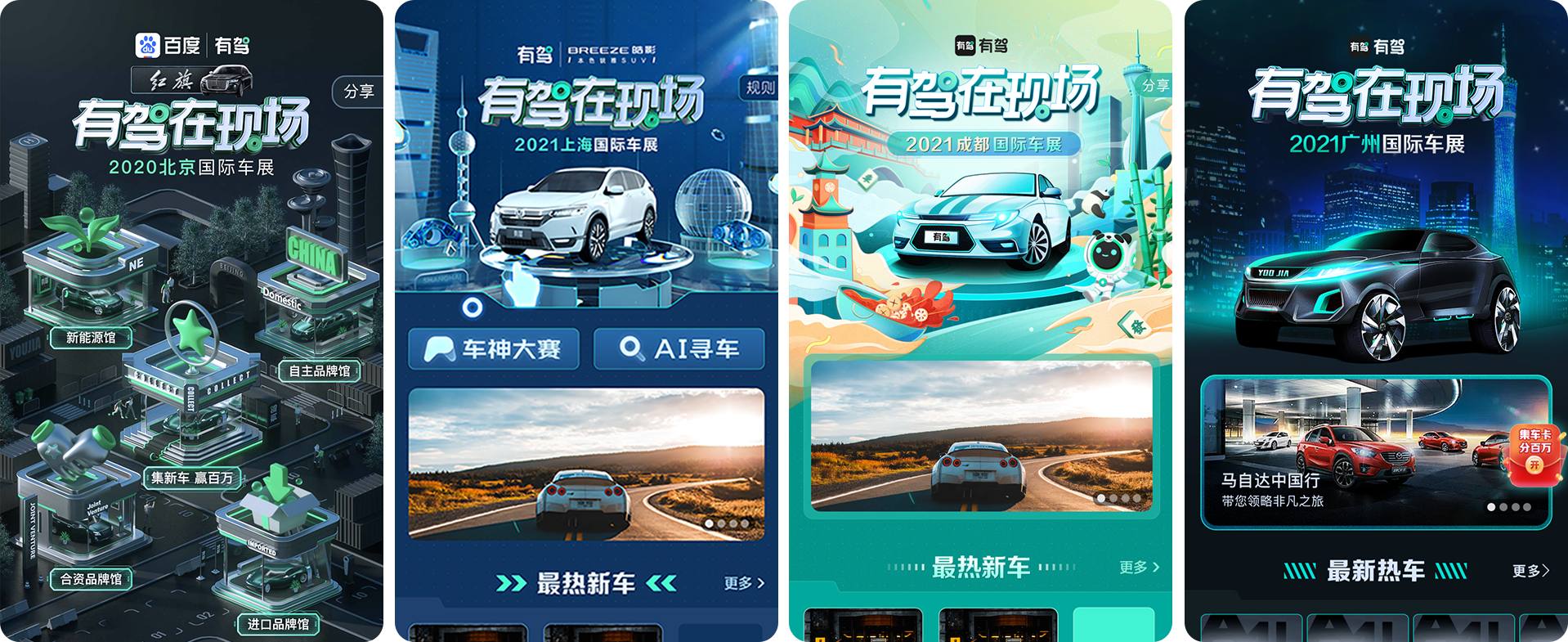 【有驾在现场】作为百度有驾车展品牌活动,我们通过未来感、年轻化、体验感三个维度来塑造有驾车展系列活动的品牌调性,搭建了基础风格,建设三维赛博朋克高品质主视觉,视觉元素细节惊喜感打磨,通过优化活动玩法进行引流,沉淀出新的大事件视觉设计思路,打造了有驾车展品牌设计全案。
