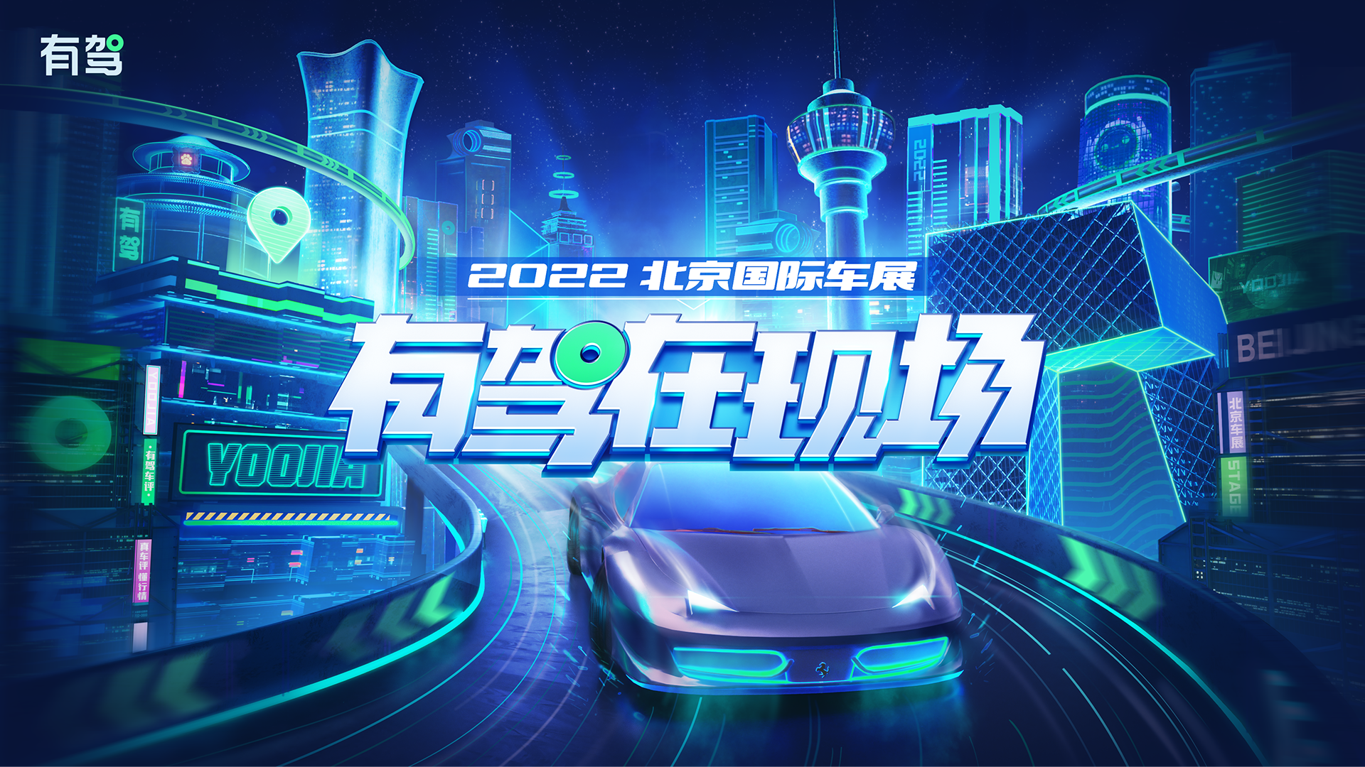 主视觉场景设定为高楼耸立的公路上,有驾跑车向“有驾在现场”北京车展活动现场飞驰。充满速度感的跑车、霓虹灯牌、高楼大厦色调和质感的碰撞,传递出一种直观的科技感,引领新时代年轻用户和有驾一起驶向未来。
