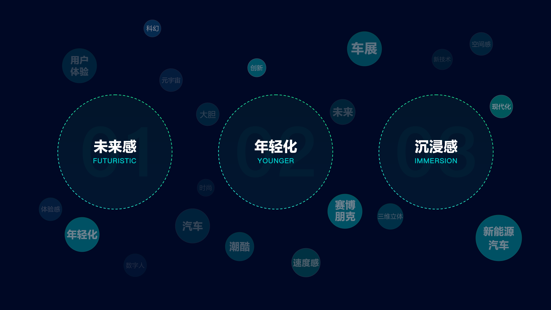 根据用户画像及现状分析,明确业务需求,通过脑暴的形式罗列品牌关键词,基于品牌DNA对有驾车展进行视觉升级需挖掘符合核心用户的语境语言和视觉偏好,提炼出品牌关键词,根据关键词规范可延续的品牌元素,打造清晰的品牌全案以更清晰的指导后续视觉设计工作。