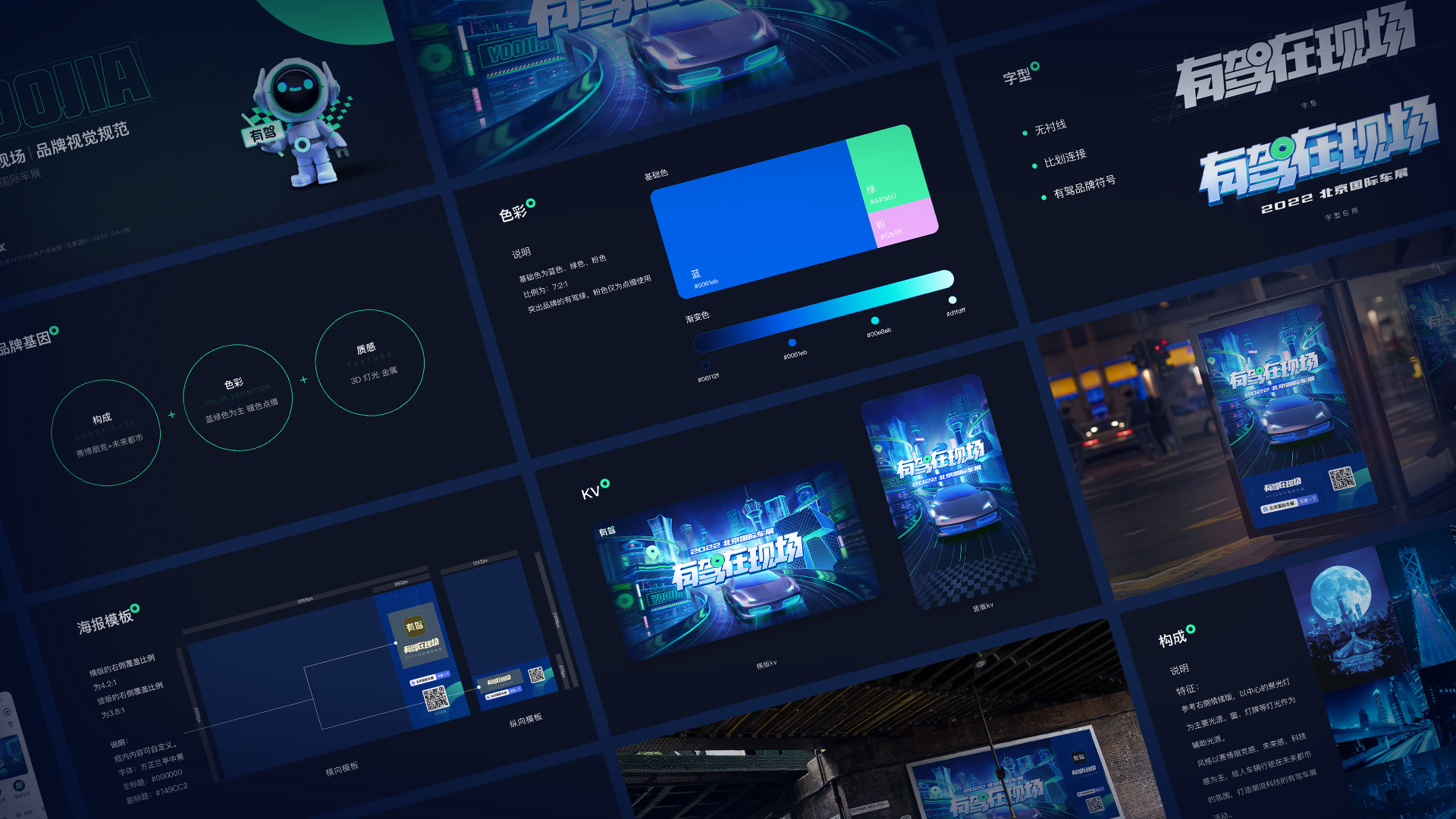 同时由于车展项目涉及跨部门合作,我们希望可以通过车展品牌全案,统一不同分工输出的设计物料视觉一致性,以达到提质增效的目的。