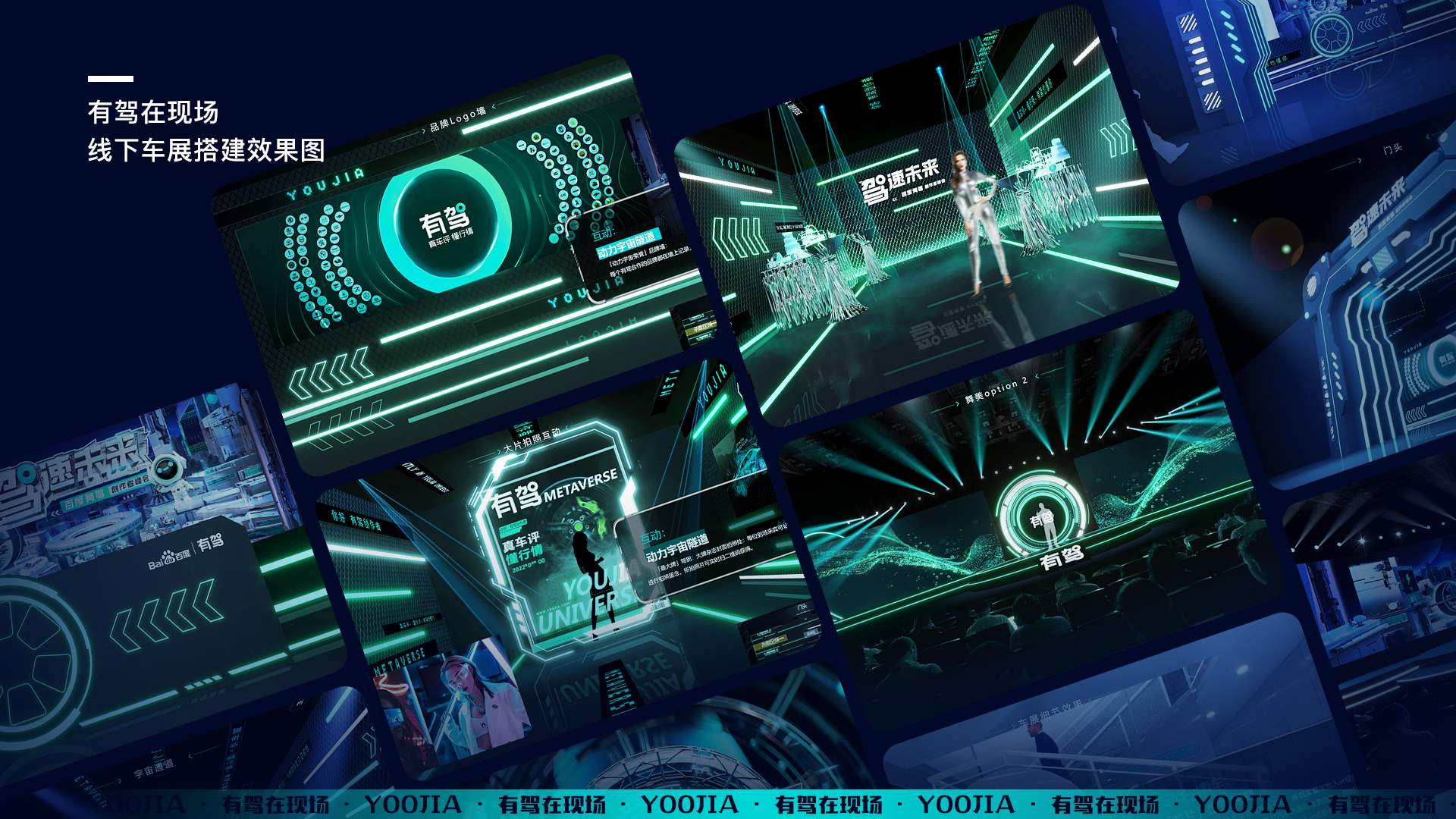 整个场景围绕“有驾在现场”进行设计,融合车展相关元素,渗透品牌标识。