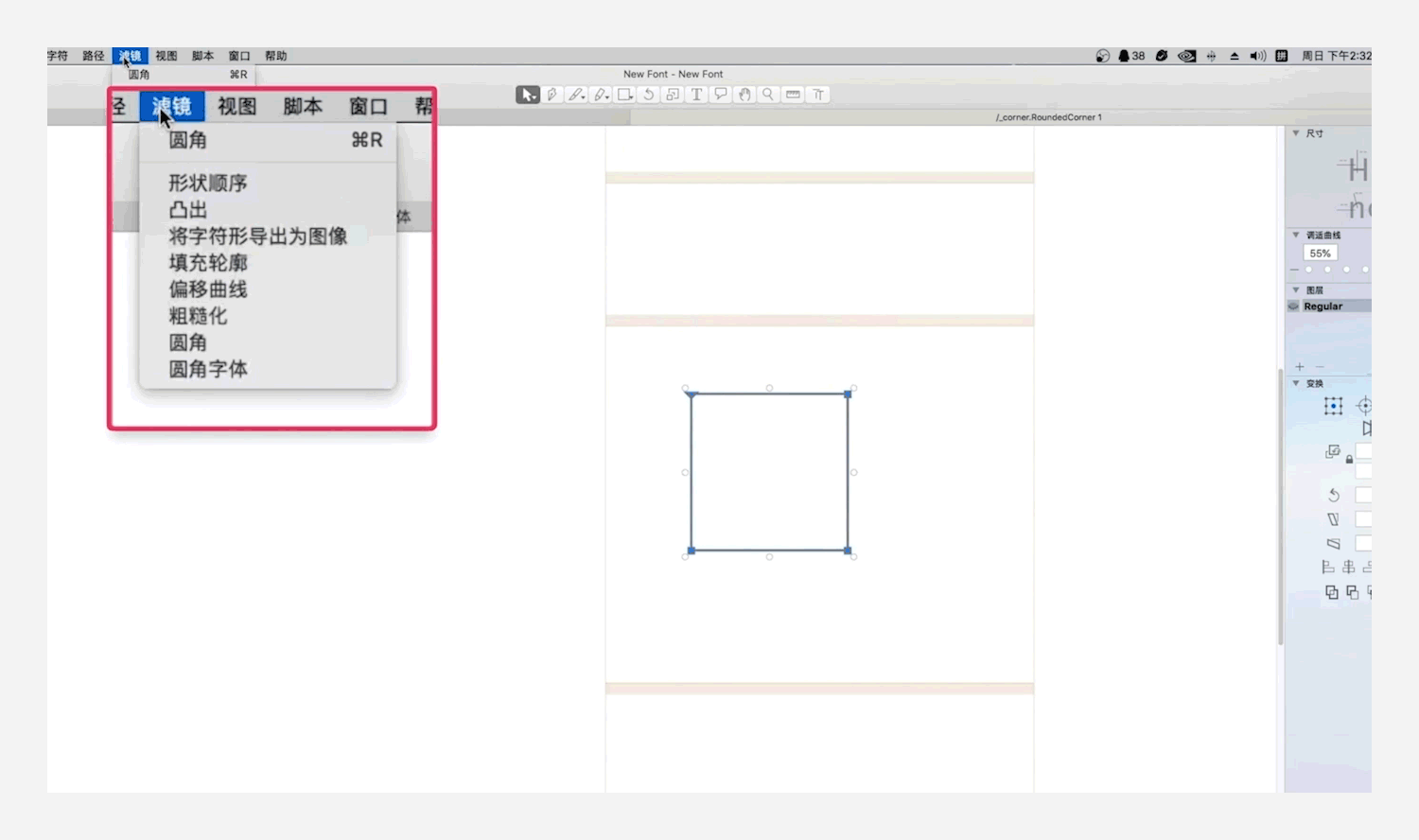 所以,还是主要拓展一下:在 Glyphs 里,如何快速绘制圆角?以及如何批量的给字体添加圆角?