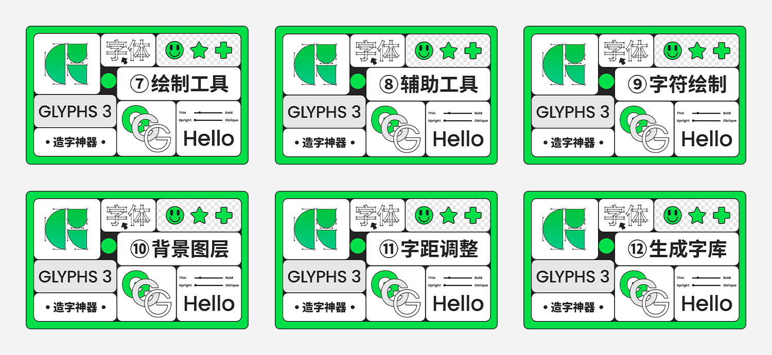 在 Glyphs 里,有很多专门为了字库创作而设计的辅助功能,这里我主要总结一些特色功能,部分常规功能大家看上面的视频讲解就ok了。
