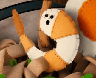 Michael:确定了织物玩具的风格后,我便开始搜索参考图。我找到了许多毛毡、针织和钩织的玩具拉面套餐图。