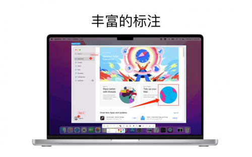 ①标注功能:矩形、圆形、横线、箭头、画笔、马赛克、文字标记、序号标签、局部高亮;②快速调整标注尺寸、透明度标注后,选中标注图案,鼠标置于图案上,滚动鼠标滚轮或双指在触控板上下滑动,调节透明度;标注后,选中标注图案,鼠标置于图案外,滚动鼠标滚轮或双指在触控板上下滑动,调节粗细。③丰富的标注样式箭头、马赛克等标注工具,提供多款样式选择,让你的标注丰富多彩。