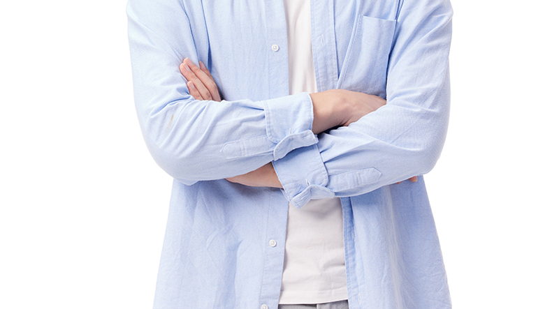 ④双手抱在胸前:防御者姿态,人处于警戒中