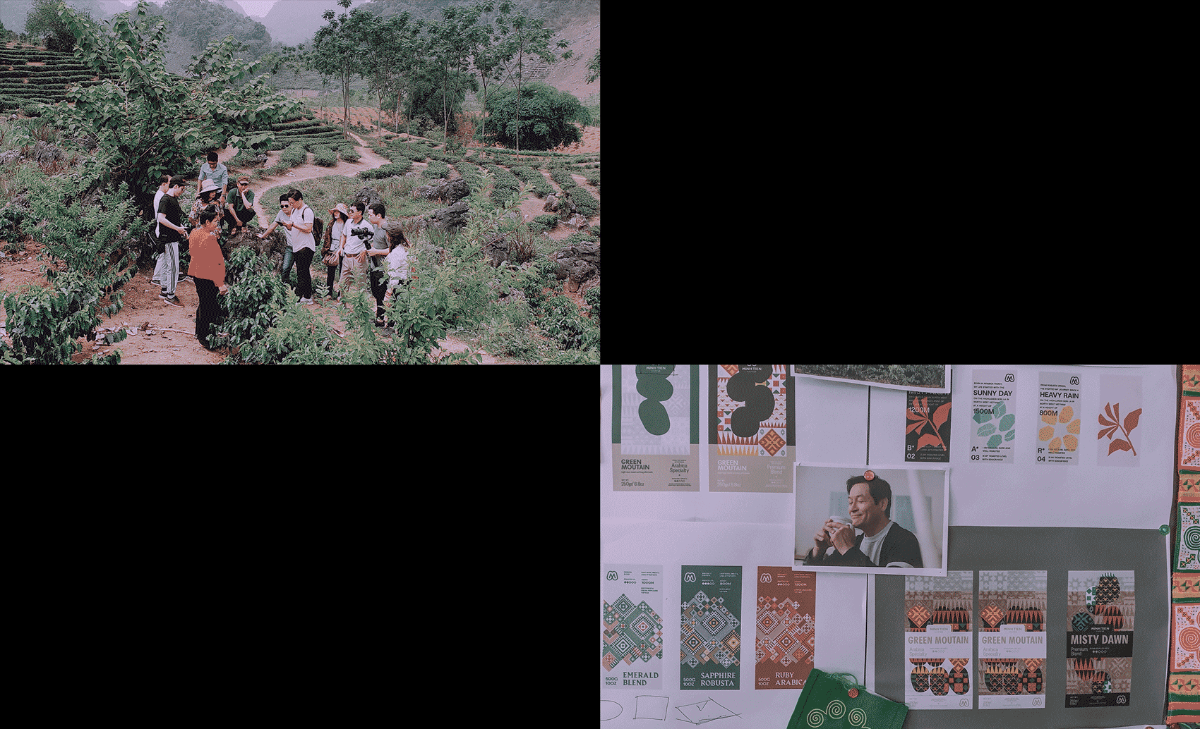 这个工作室还为Coffilia另一款包装提供了视觉方案。设计灵感来自于当地农耕地区的民族服饰,织锦图案将品牌文化与当地文化联系起来。外包装用描图纸勾勒出越南西北部地区云雾缭绕的感觉,通过设计为消费者传播文化遗产的价值,有助于将咖啡饮用体验与当地文化故事联系起来。