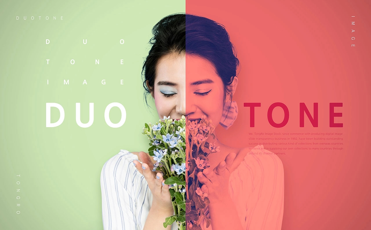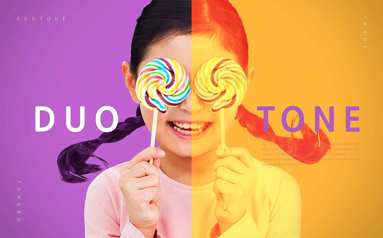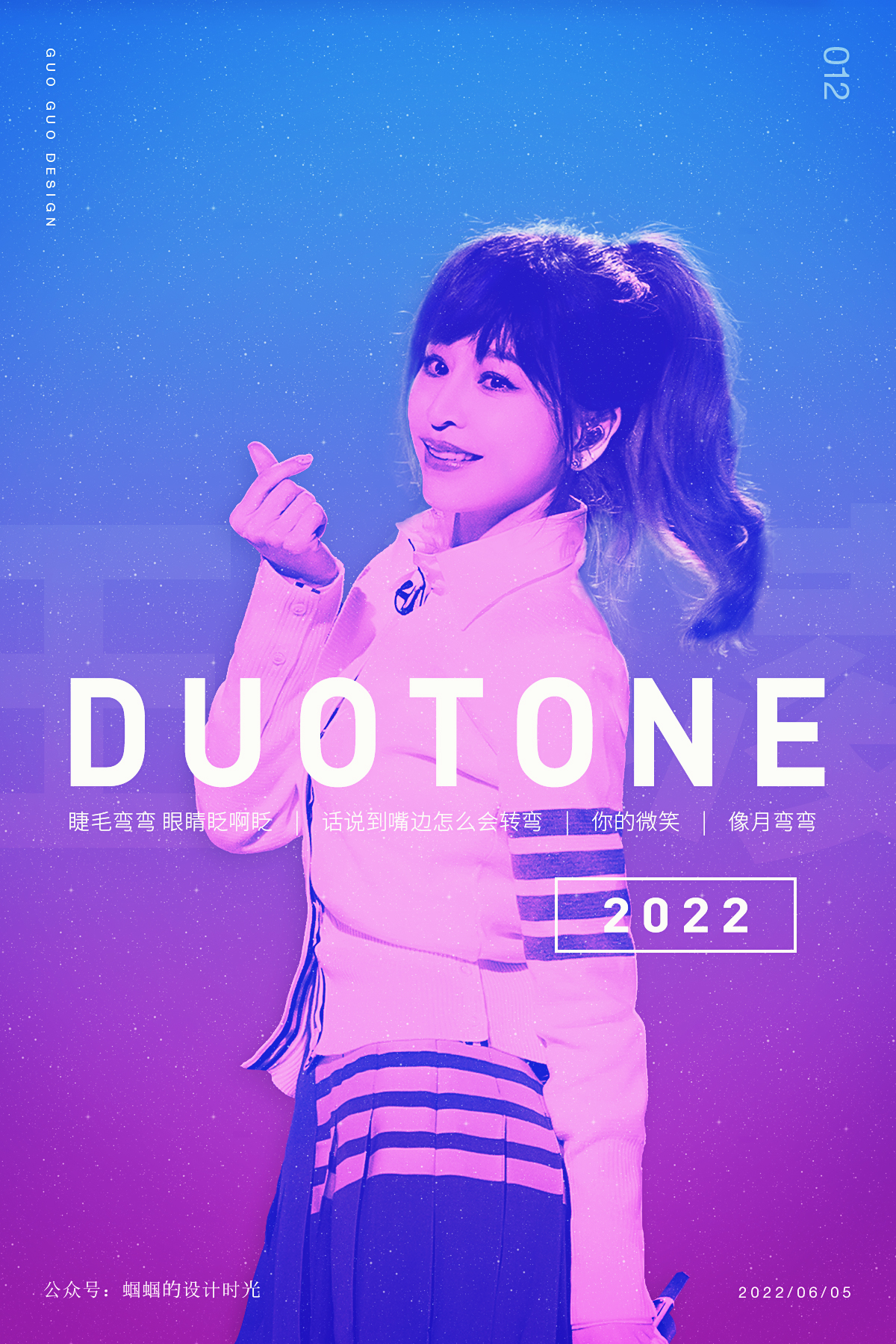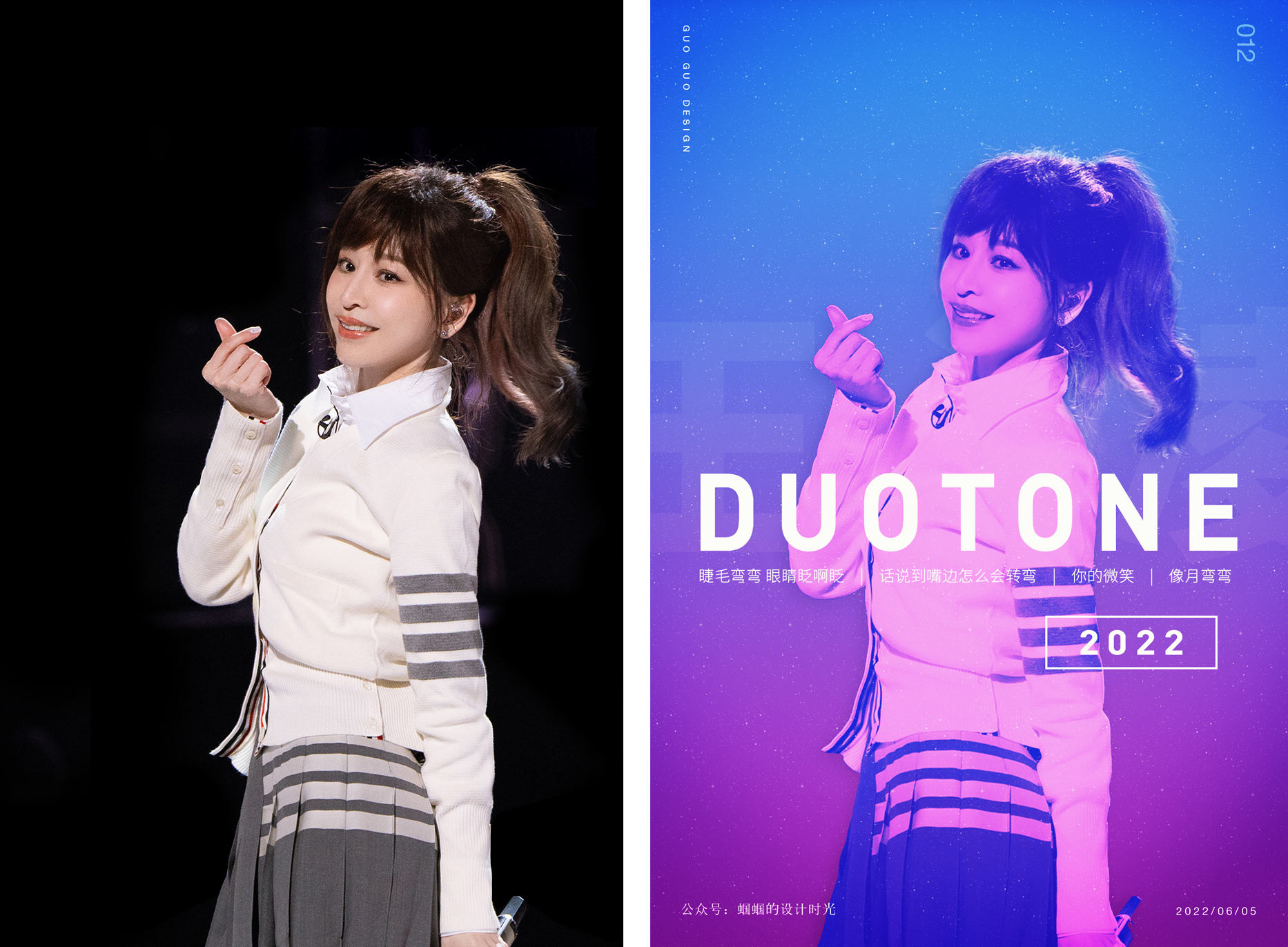 双色调设计有很强的视觉表现力,她非常干净简约,容易统一色调,只需一招就能改变素材原有的色调,达到自己的目的