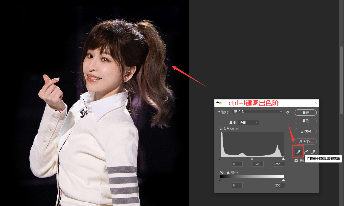 我抠发丝的方法如下:按ctrl+l键打开色阶窗口