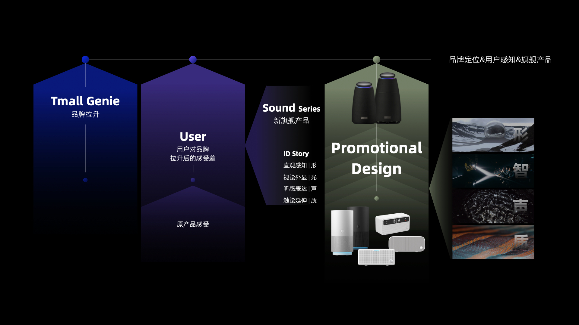 天猫精灵设计部负责完成天猫精灵Sound系列的工业设计、光效体验设计以及产品营销创意设计工作。本系列文章将通分别从这三个设计角度系统性地展现Sound系列背后的设计过程与思考。