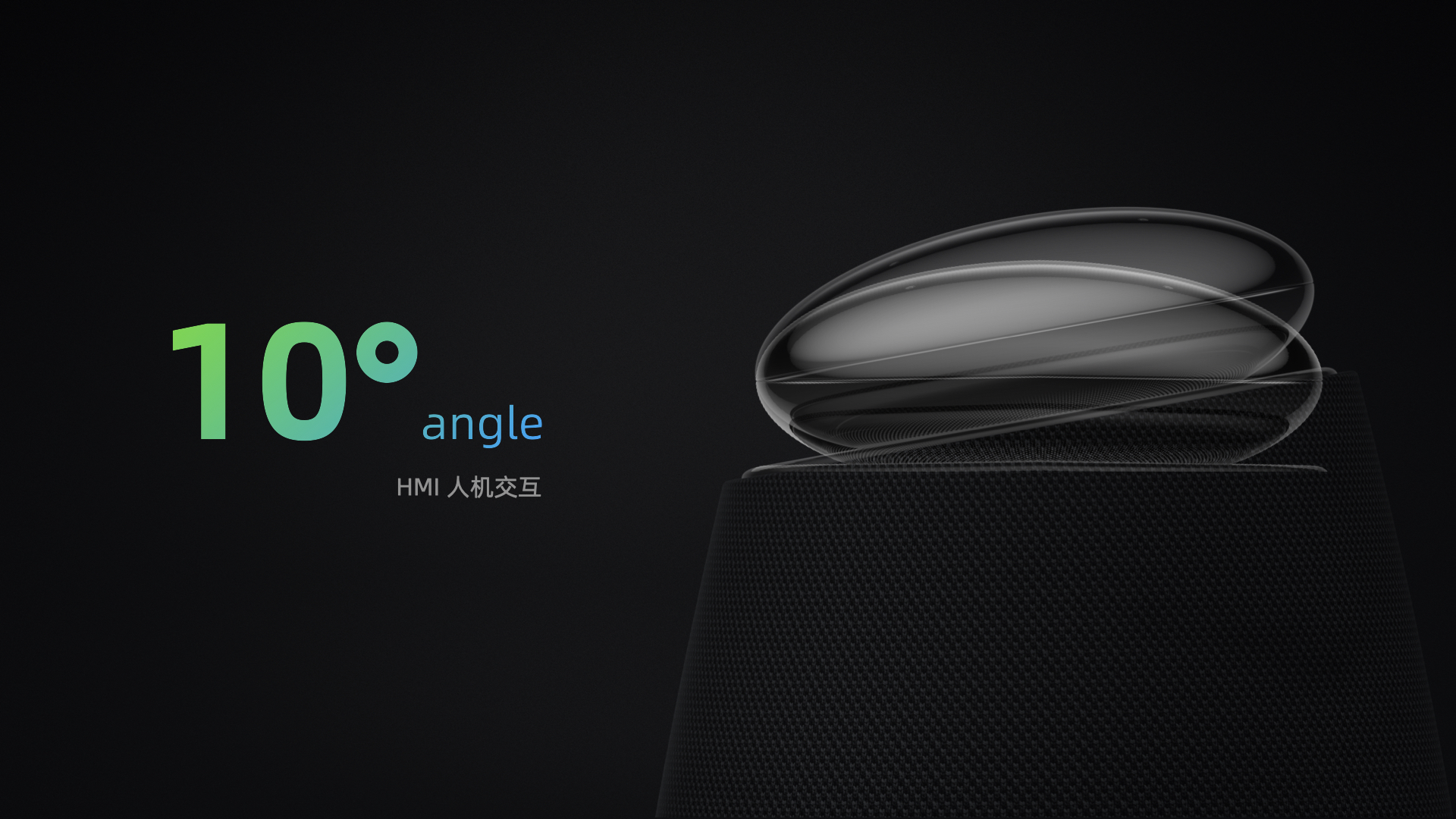 事实上,圆形在符号语意学中其指向性是不够明确的,这就尤其需要在交互层面强化指向特征并给用户明确的使用体验。因此UFO前倾10度,更加明确了产品的交互及音频指向,同时兼顾了环形麦克风的拾音灵敏度。