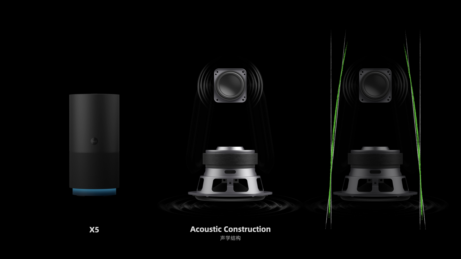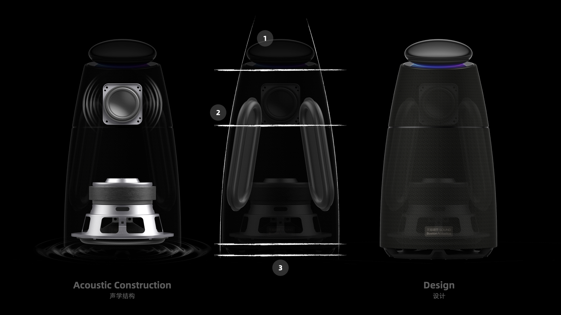 前期阶段设计团队深入了解声学原理并协同声学专家分析合理的声学架构,最终在产品延续及硬件合理性上找到了可能——Sound系列采用了下宽上窄的纺锤形体,目的在于平衡形体与音腔体积的诉求下充分释放三频均衡的声学能量。 而在基本形体之外,该如何整合体验以及释放出交互的设计空间,这成了一个感性与理性的胶着点。