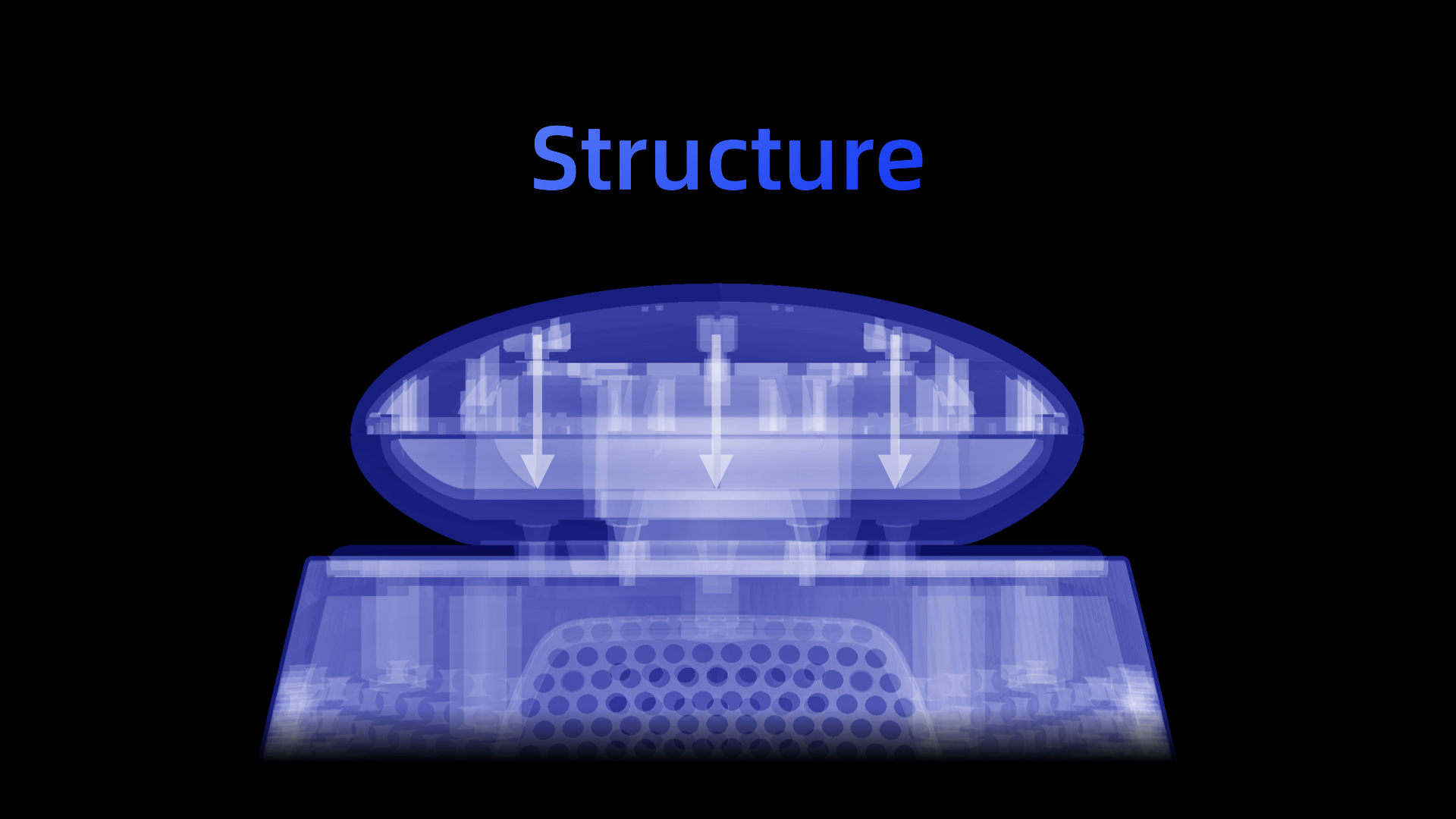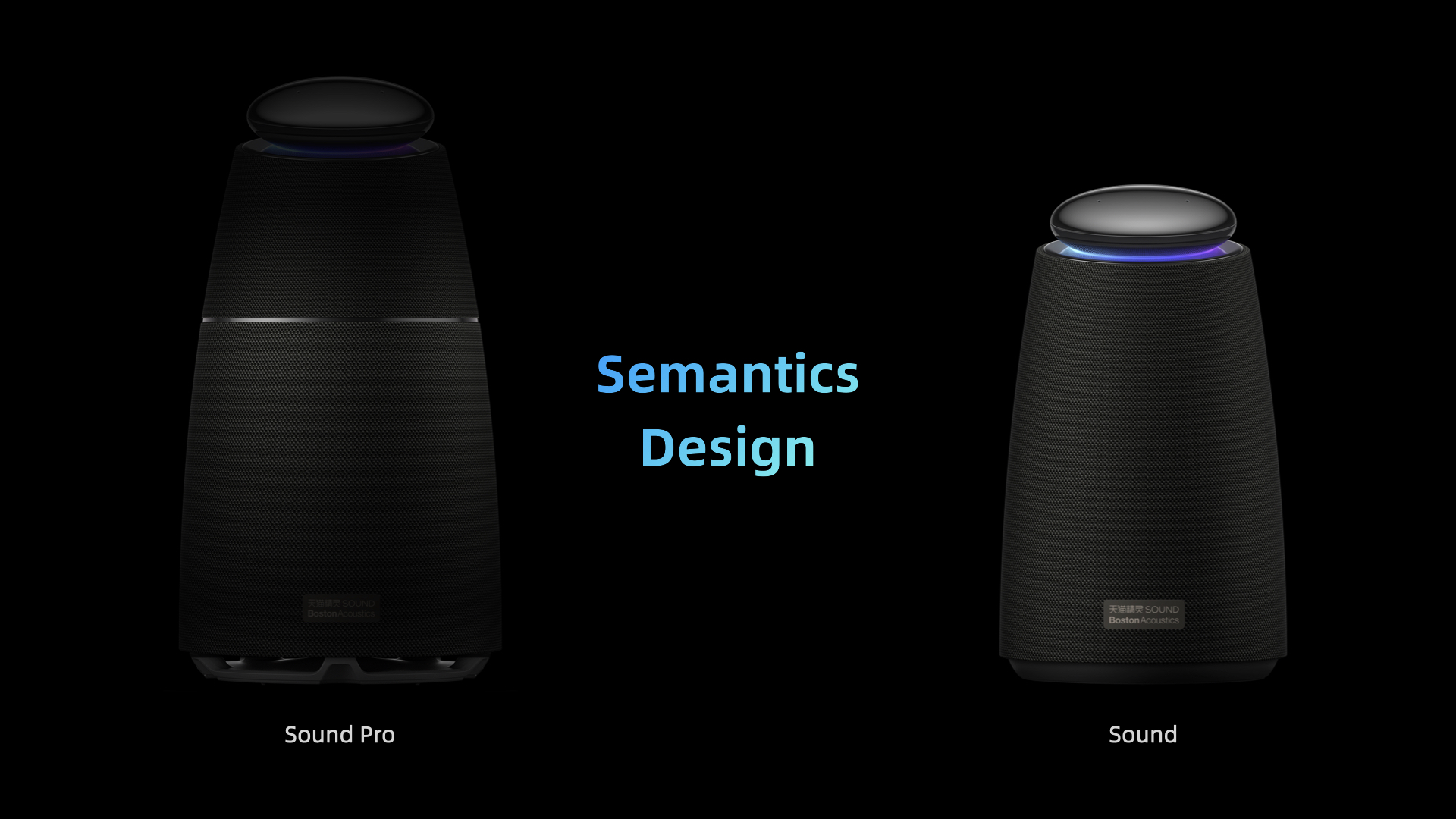 Sound Pro和Sound 通过底部的出音设计可以看出两者的定位差异,从声学功能借用设计手段的外显到内敛,可以充分满足用户不同的需求与喜好。Sound Pro为了满足底部重低音高性能释放的要求,采用了开放式的透气设计,音浪可从底部向外澎湃释放,在细节上呈现性能美学。