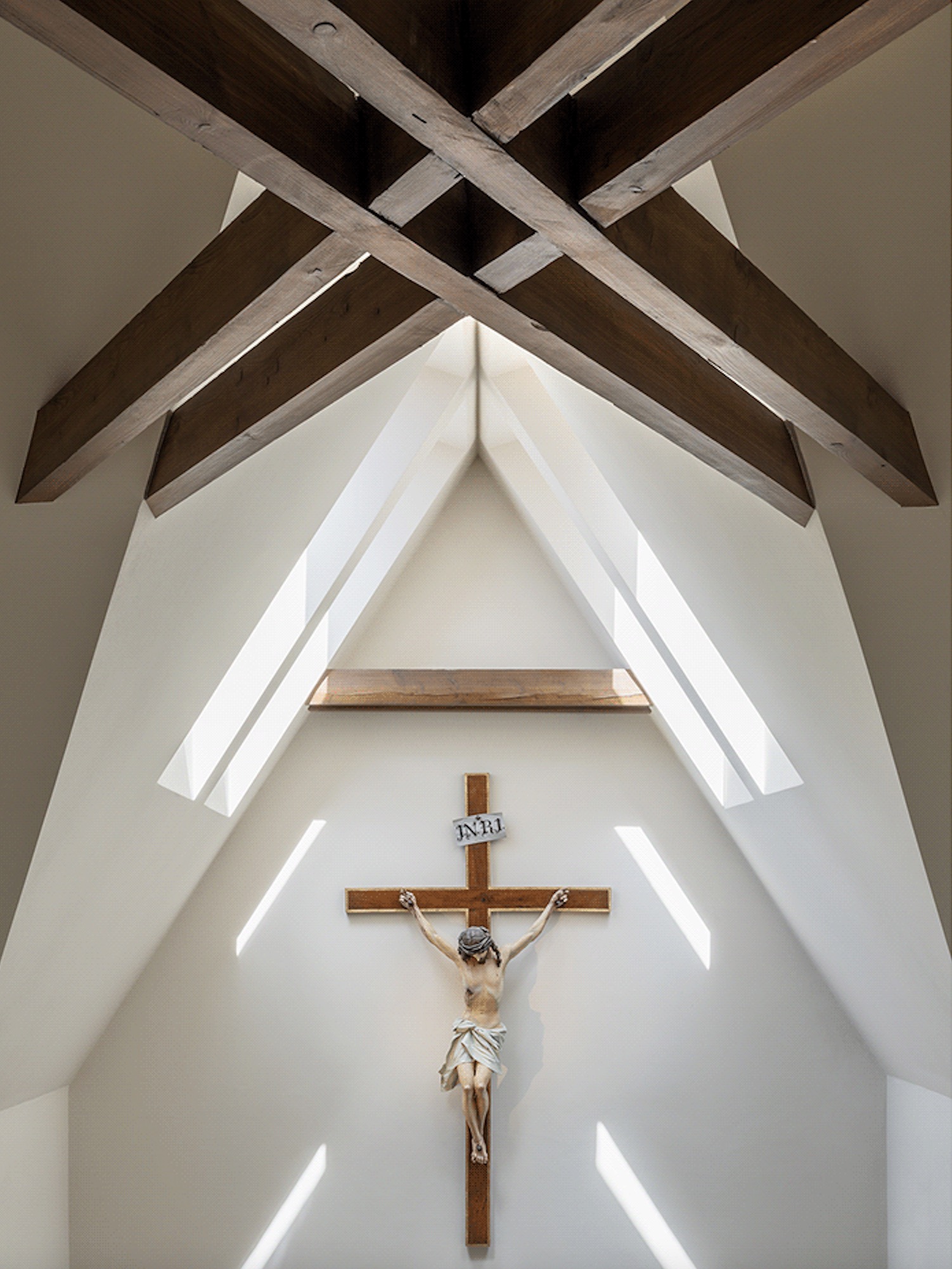 使用优质的木材和石灰石材料翻新后,这座历史悠久的建筑拥有了全新的内饰,Violetta Mitter采用厚实的酸蚀砂吹制玻璃面板,使信息具有漂浮感,给人以神圣感。手工制作和单独涂漆的彩色装饰面板,回溯了巴洛克建筑的色彩美学。考虑到天主教和宗教的术语,设计了象征性icon,整套导视系统营造出一种精致、细致入微的氛围。