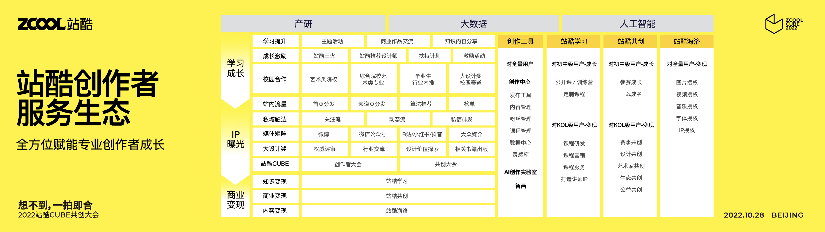 目前,站酷网形成了基本完整的创作者服务生态,在学习成长、展示自我、创作工具、商业变现等方面,全方位赋能创作者成长。