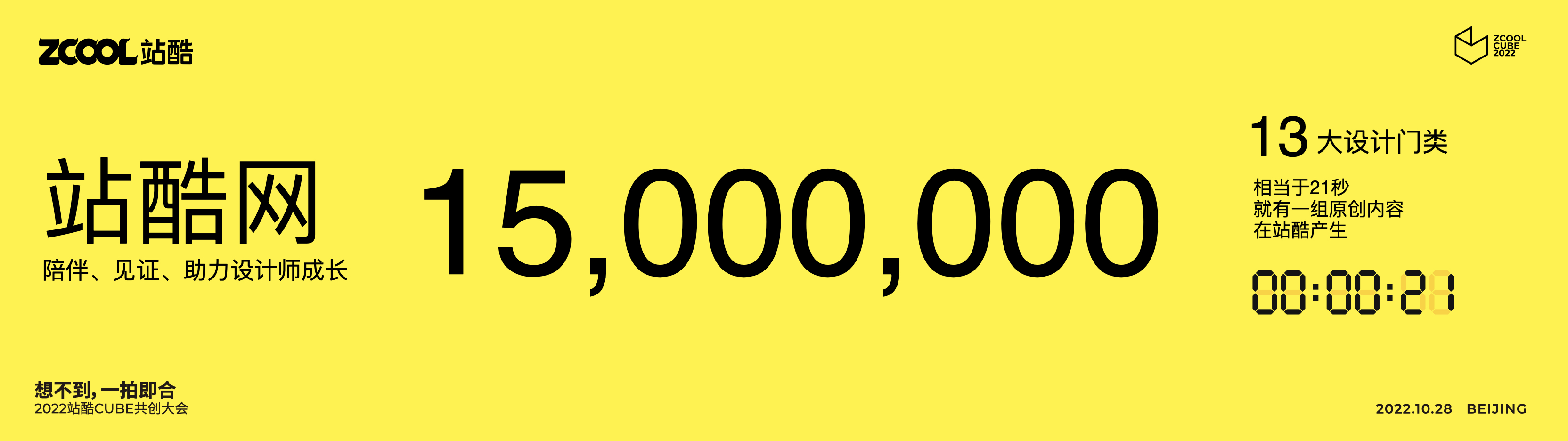 到今天,站酷平台的创作者,已经达到1500万。他们来自全球300多个城市,他们是设计师、插画师、摄影师、艺术家等等。大概每21秒,他们就有1组原创内容在站酷产生。