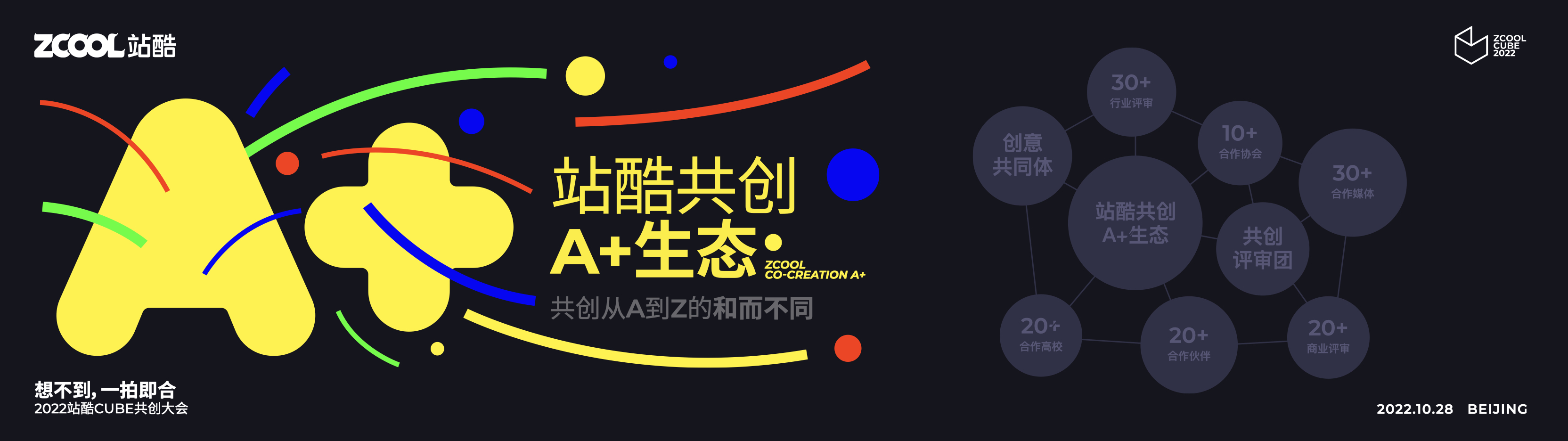 为了让更多鲜活想象力的“一拍即合”发生,今年9月,站酷共创基于12年创意营销能力,联合创意人、行业协会、机构、高校、媒体、品牌等创意及泛创意圈层,共同构建发布了「站酷共创A+生态」。