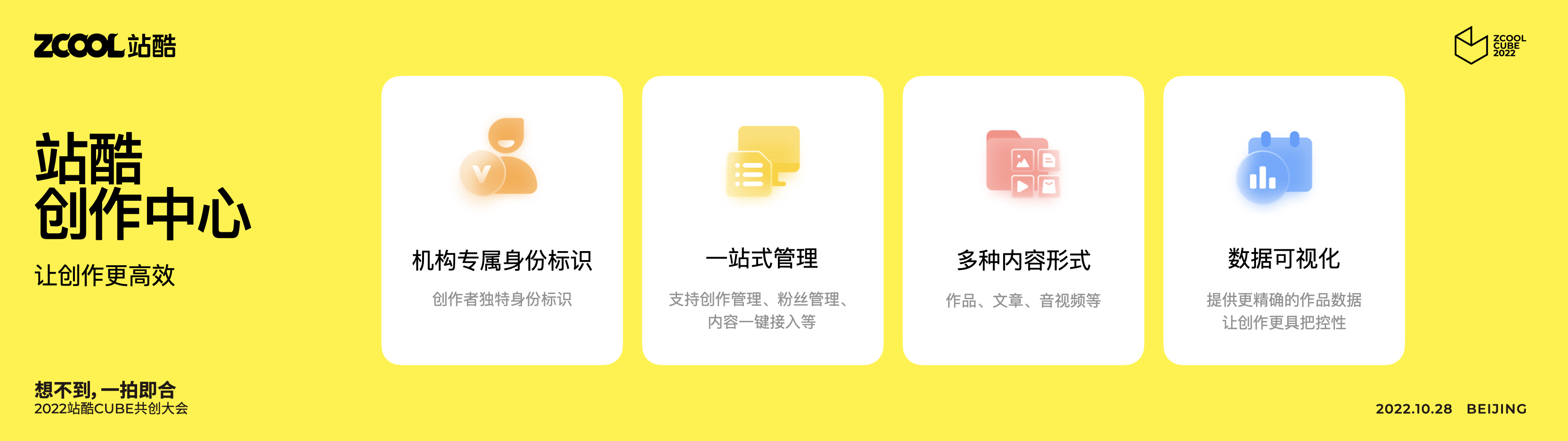 各位站酷的新老朋友们,上午好。欢迎来到2022站酷CUBE共创大会,很高兴又一次在CUBE和这么多先锋嘉宾、创作者、品牌伙伴们相聚。