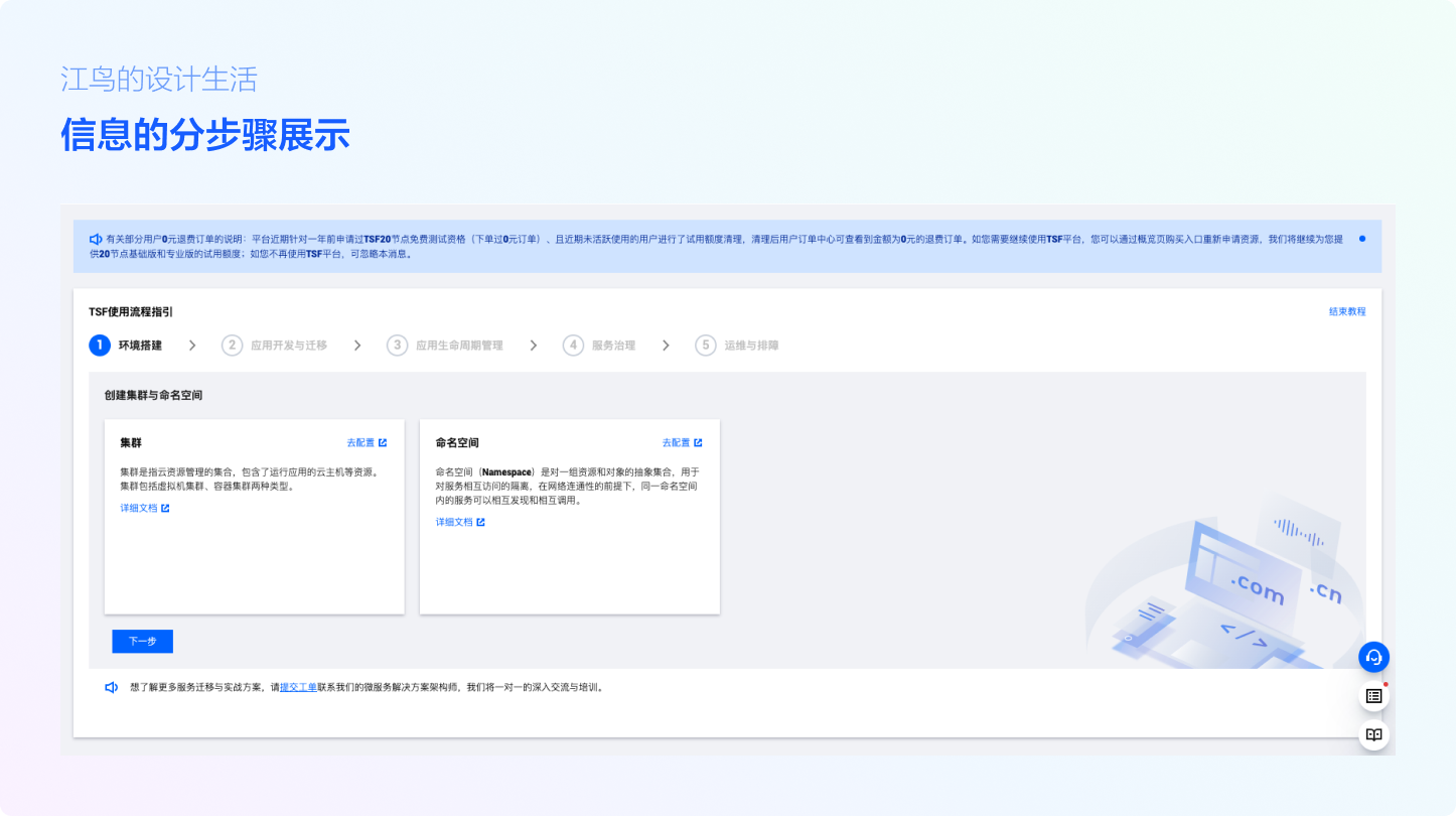 控制页面的浏览量就是控制信息的展示数量。这里最常见的就是步骤条(Steps)组件了,明示任务流程和当前完成程度,引导用户按照步骤完成任务。
