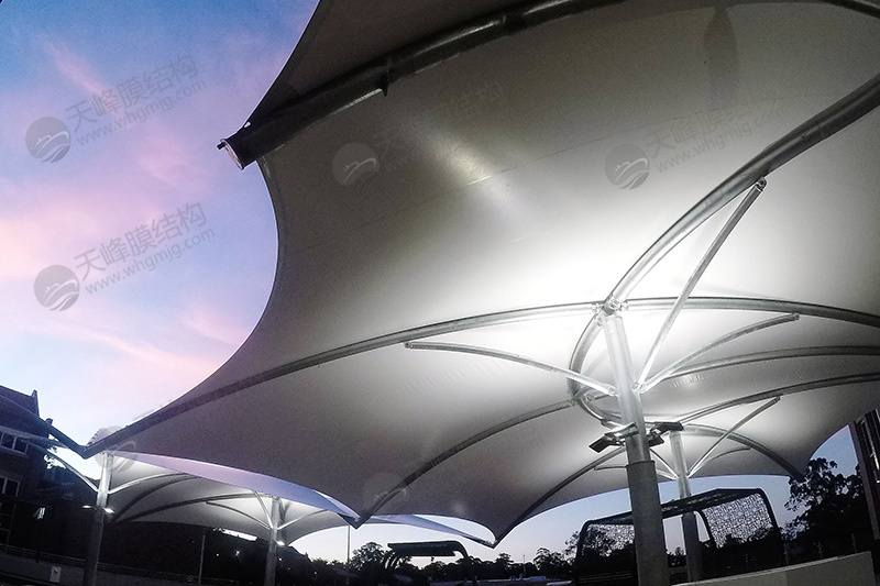 武汉膜结构_酒店景观膜结构占地760平方米织物为ETFE膜材,具有透光性,阻燃性,耐用性的特点。