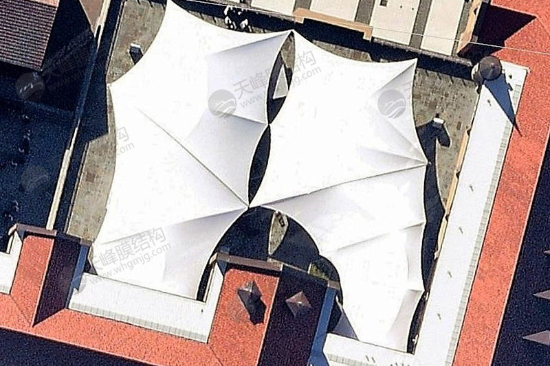 武汉膜结构_酒店景观膜结构膜材图 武汉膜结构_酒店景观膜结构钢材均经过热浸镀锌能更有效的防止钢材腐蚀生锈,更安全、更耐用。