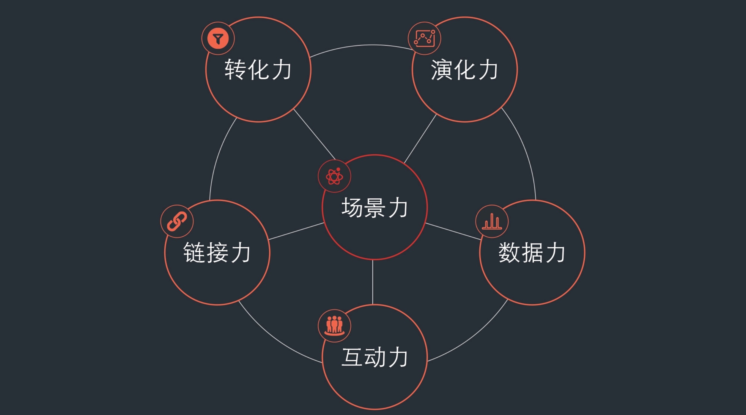 体验模型循环:你要从体验模型的 6 个要素,包括场景力、互动力、转化力、链接力、数据力、演化力,来设计和架构体验设计的循环。