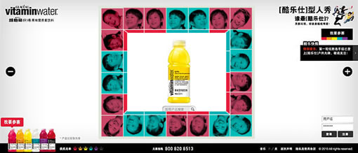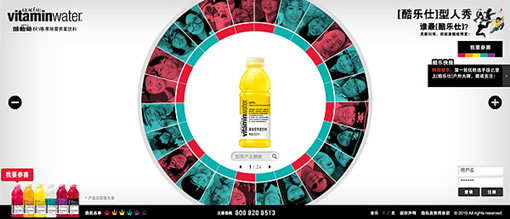 在这个页面上圆形挑起了大梁,支撑整个页面,人物笑脸图片组合的圆形包围着瓶子,映射了这个饮料带给我们的快乐。圆形不仅加强了焦点,更加强了页面的层次感,让页面不会单薄,无力度。
