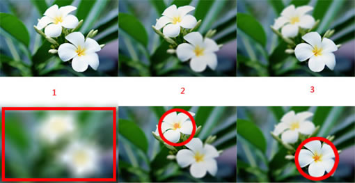 人们用视觉获取环境中的信息,对你注意的周围都会是模糊的,你视线集中的中心点是最清晰的。第一张,视觉上呈现这样的状态是,视线上没有集中,整体模糊,是成方形的视觉框架。第二张和第三张,图中的两朵花在图形中是最漂亮的亮点,漂亮的东西会引人注意,你会注意到上一朵或则下一朵,注意任何一朵花的时候,眼球集中点会以圆的形状向外逐渐模糊,最中心点就是焦点。圆形作为设计中的元素的时候,自然更加的适应视觉上的感知。