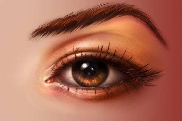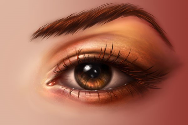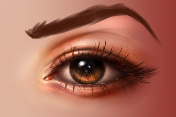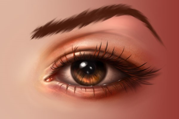 接下来我们需要给眼睫毛营造出立体效果。将前景色调整为#e7410e,然后沿着每一根睫毛轻刷。