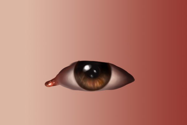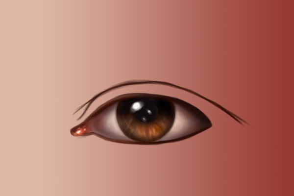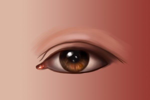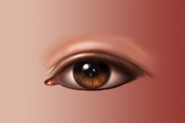 使用砖色,例如#c54432,在眼睑周围轻轻画出一些细节点缀,特别是在下眼睑靠内侧的地方。不要太明显,只需要用较轻的笔触让眼睛看起来有生气,又不是画僵尸眼睛,所以就不要画得血红血红的。