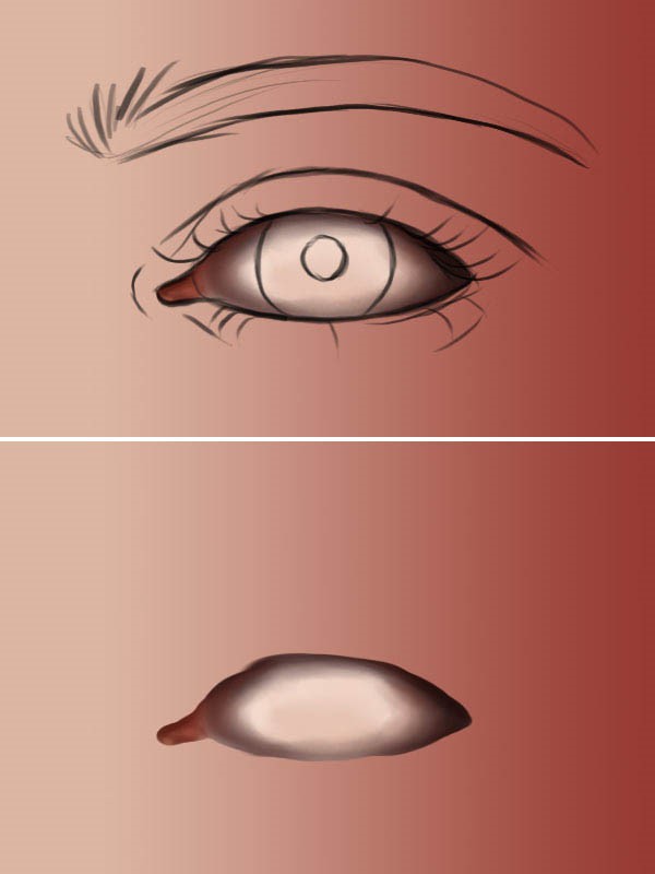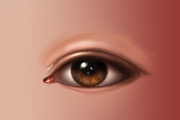 让我们从构建基础开始——画眼白。虽然是叫“眼白”,但是眼球可不是纯白色的,它的颜色在淡灰色、米色和红色间变化,表面还附着红色的血丝。