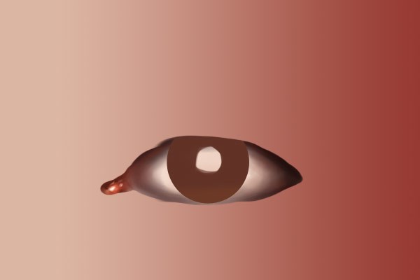 用更深一些的色调,比如#220b07,在眼白的上方营造出由于上眼睑和眼睫毛遮盖产生的深色阴影。