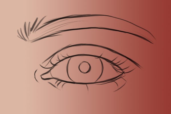 创建一个新的图层,命名为“线稿”,在上面画一个你喜欢的基础眼形。可以直接参考我们最早画的那只眼睛,也可以在后面列举的那些眼形里挑选一个。