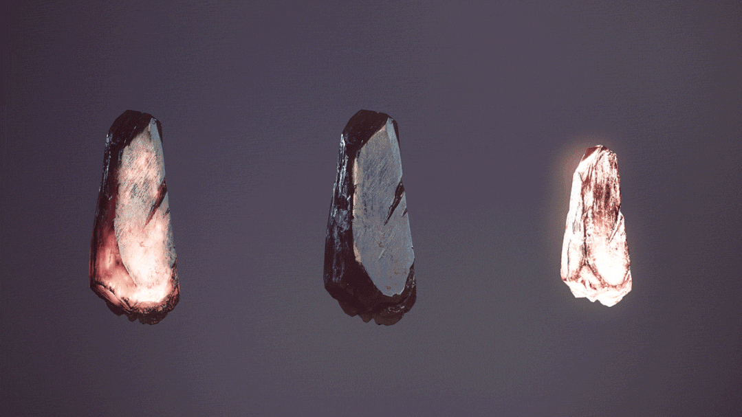 晶体是由两层几何结构和两种不同的材料进行组成。第一种是使用“透明度”模块中的折射。我选中了“使用微曲面”设置,以便可以使用光泽贴图(gloss)来模糊折射。水晶内部的发光材料要给人一种半透明的印象。第二层使用热度贴图来产生发光的效果。这种发射模式非常方便,因为您只需要制作一个灰度贴图,然后它可以很容易地从Substance Painter生成。Toolbag将负责根据温度值来显示物理上正确的颜色。为了进一步推动辉光效果,我为反射率添加了一种强烈的颜色,并将“强度”值推到2。通过对“各向异性”和“折射偏移”滑块进行调整添加二次反射,可以产生无法预测的发光效果。