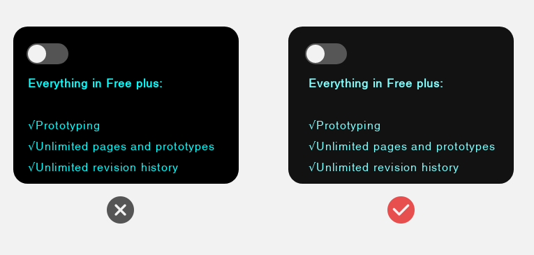 在深色模式下,界面本身比较暗沉,使用鲜艳的颜色会对用户不太友好,导致阅读性较差。所以在设计的时候需要避免使用高饱和度颜色。