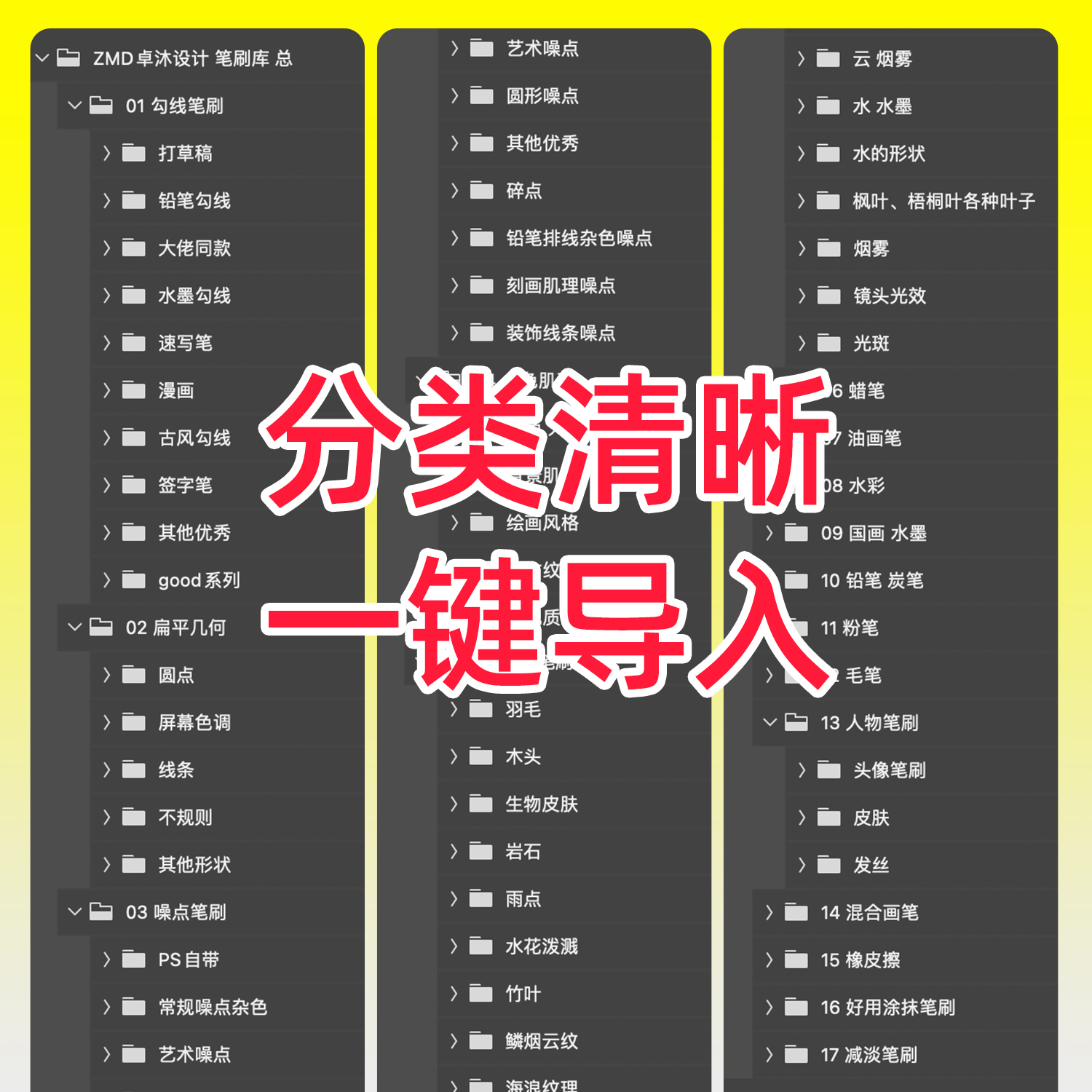这些笔刷是根据我的工作经验,再结合“百家之长”总结而出,无论你是平面设计师、视觉设计师、插画师,都足够用了。