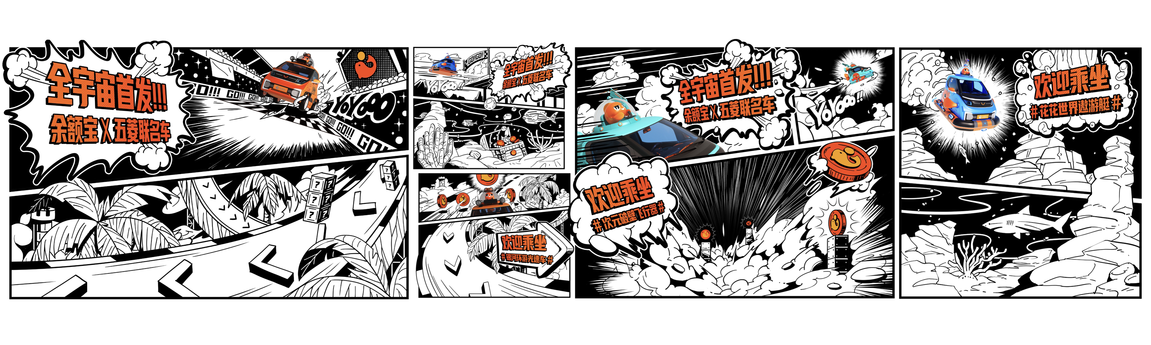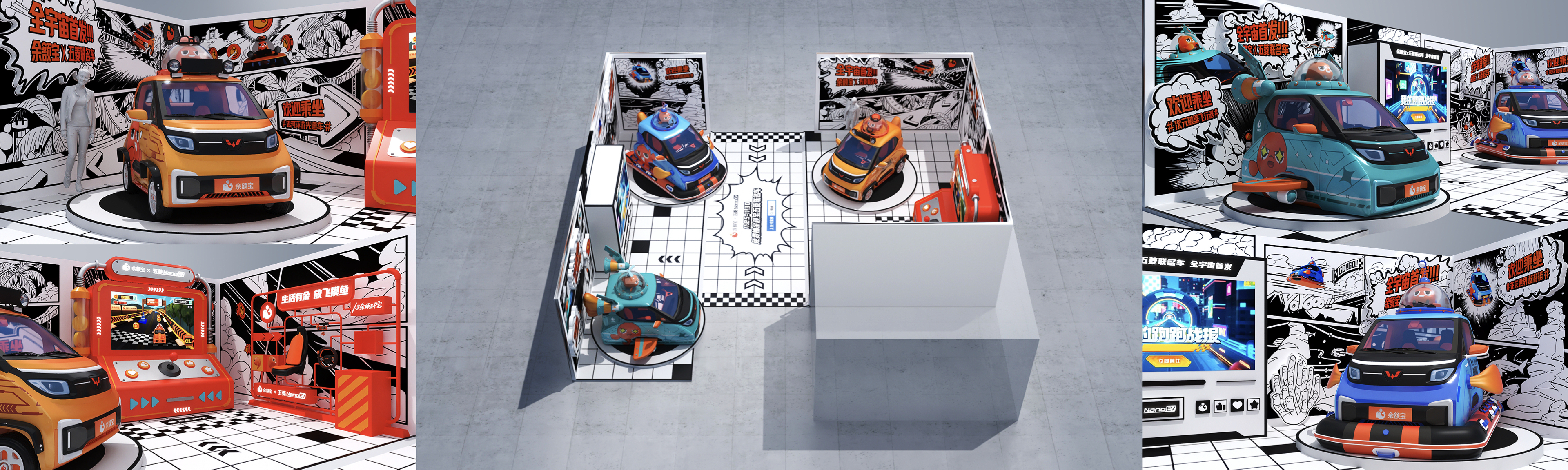 当然,这几辆车不止停留在平面设计上, 经过两个多月的盯场,改配色、做组件、再拼装等,最终这三辆车被真实地做了出来,让梦想照进了现实;在上海大世界举办的YCG动漫展上,将整个空间结合二次元漫画等设计,把三辆漫画车搬到了现场,让coser走进漫画里。