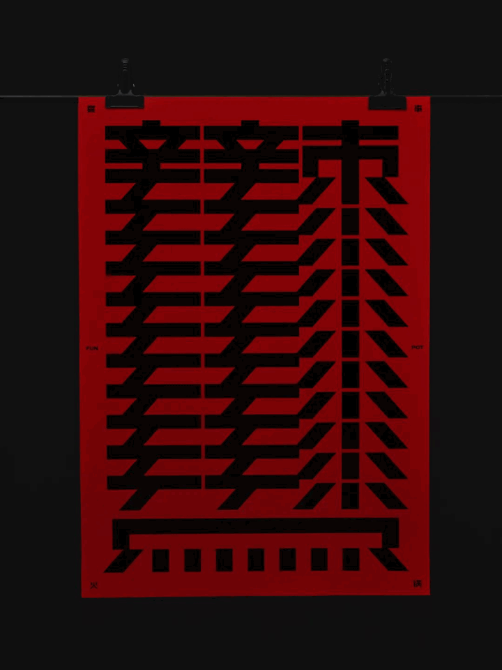 在字体设计上,设计师发挥想象力,挖掘汉字独特的识别性且使其变形,为食客传达了热烈的火锅体验并搭建了一场沉浸式的视觉体验。