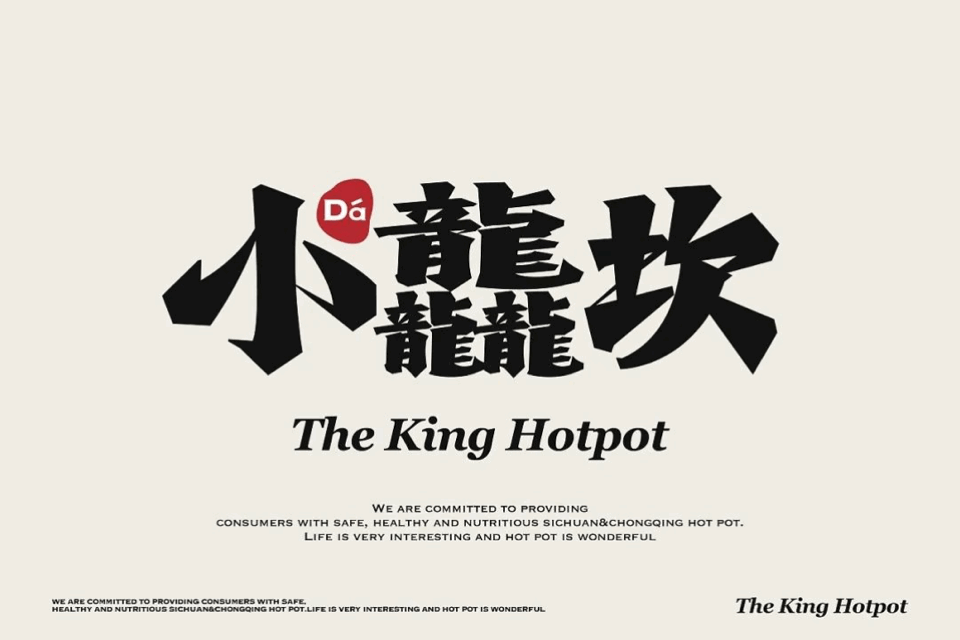 字体设计保持着品牌“传承而立新的”态度,在基本字形上加入变化,炙热的烟火从字体的曲线中得以体现,从视觉上便能感觉到火锅的张力和能量,同时也彰显了品牌的年轻与潮流。