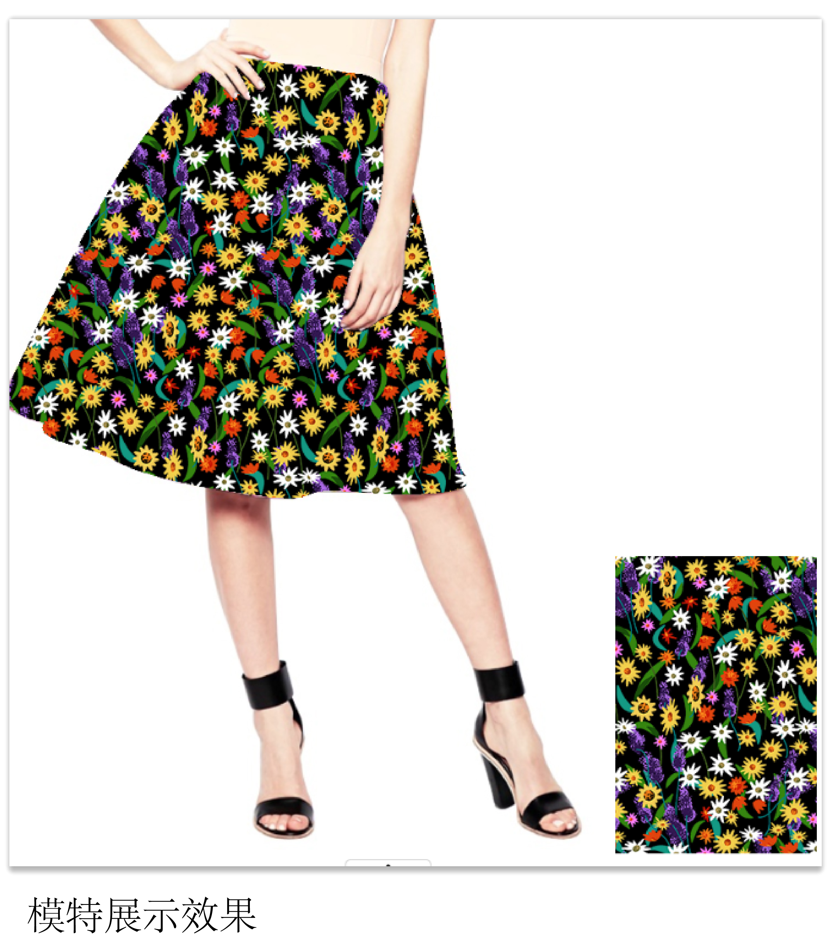 让我们先看看最终模特的展示效果吧,下面我们将一步步讲述关于一张图变成服装印花的产生过程