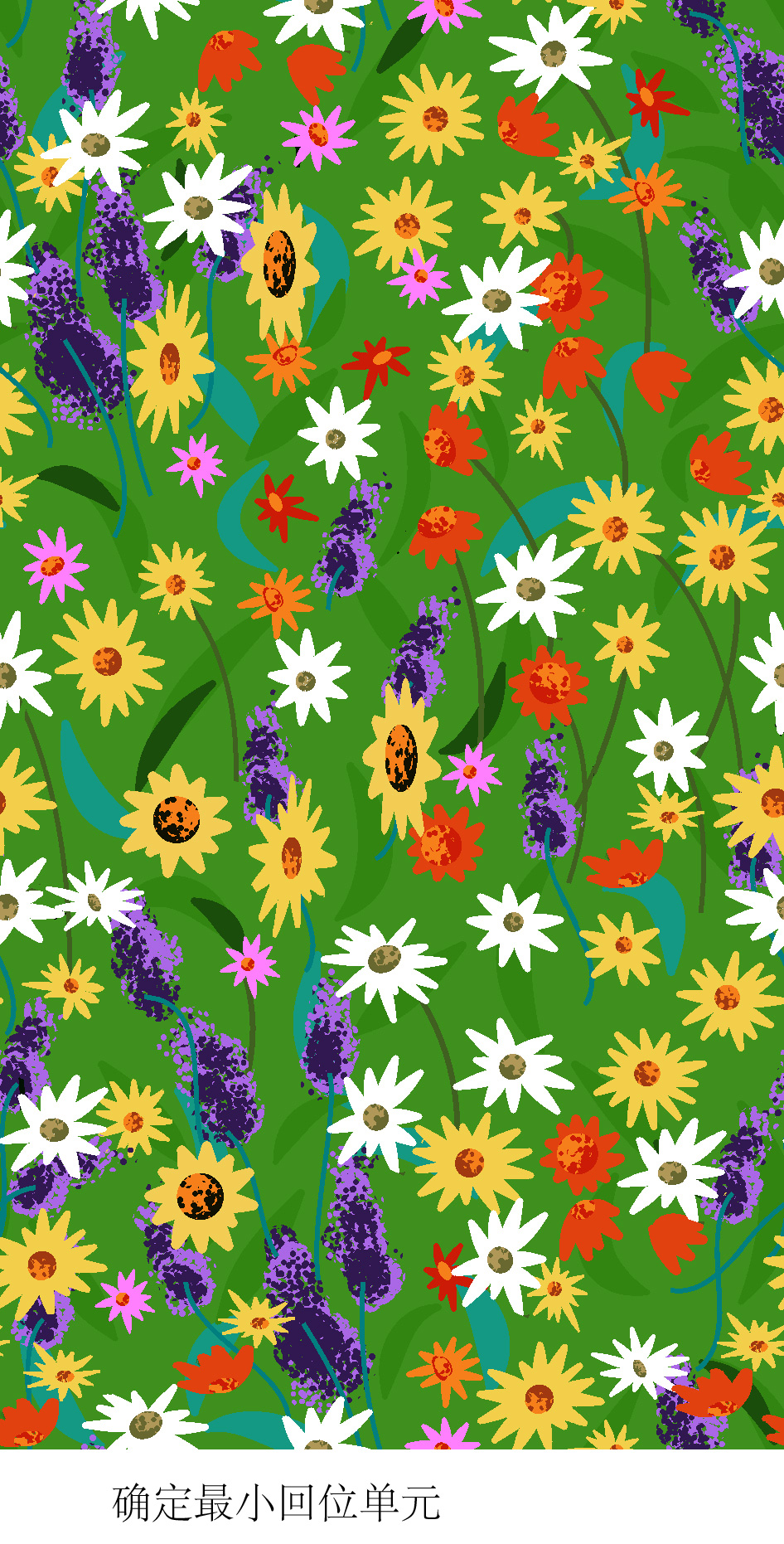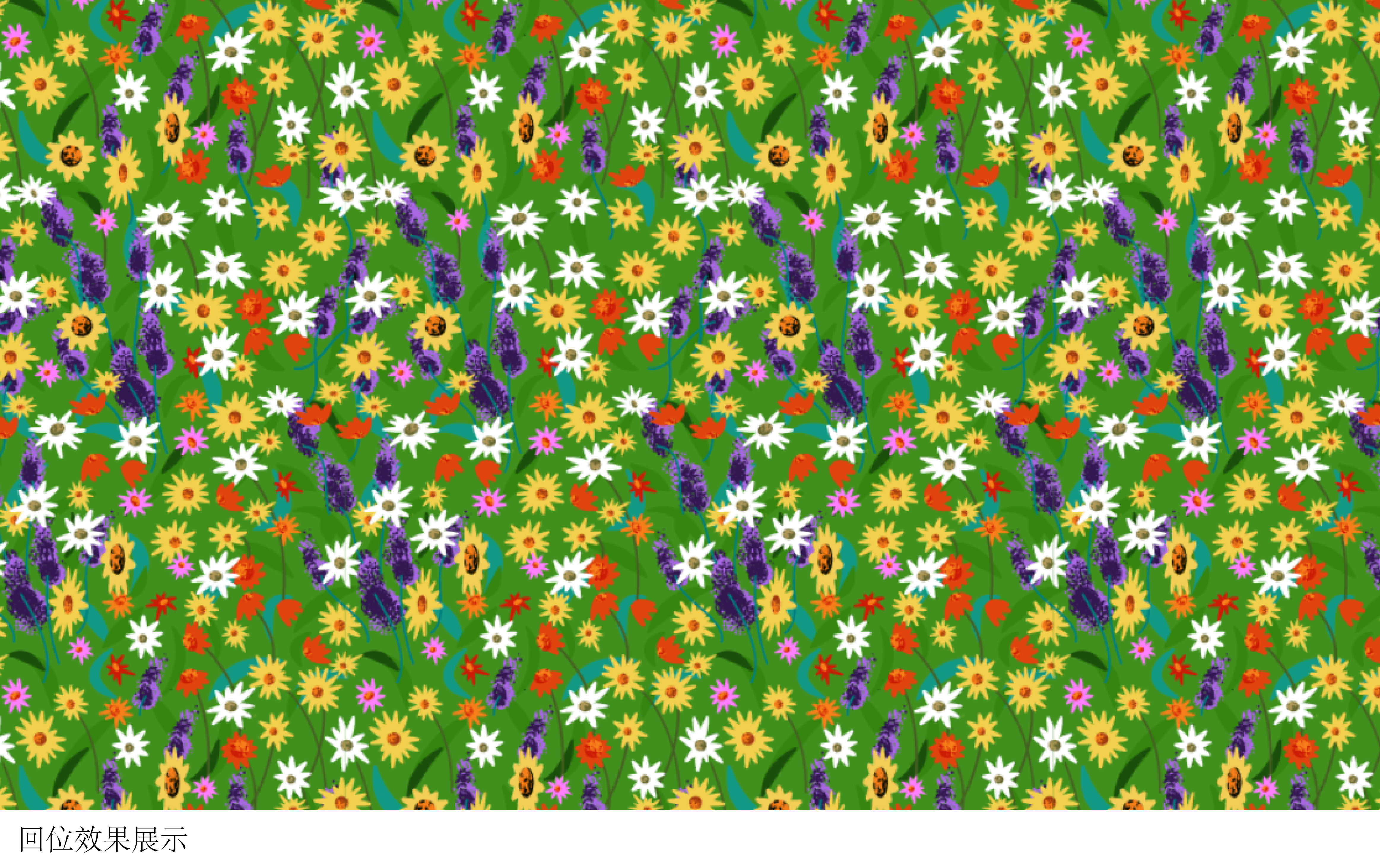 这一步是回位效果展示,一是方便客户看到一个完整的面料效果,同时也可以检查回位是否存在问题,也为小单元的配色提供参考,因为小回位是小面积,和平铺出来的效果会略有差异,毕竟是点和面的关系,会有不一样的视觉效果