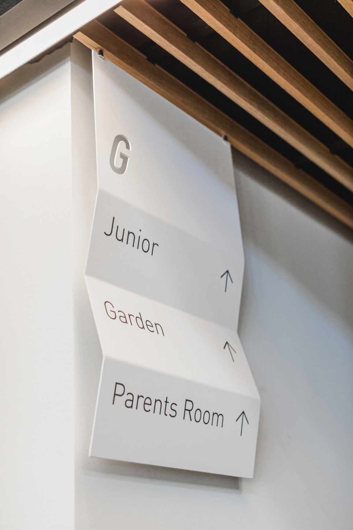 标牌形式的灵感来自于该建筑最强大的特色——新屋顶,屋顶的折叠元素被提取出来设计了多种形态的标牌,倾斜的一级信息形成一致性的视觉效果。采用湖蓝色和黄色作为品牌配色,鲜明的导览图帮助访客快速定位,黑白配色的折叠标牌提供了有趣的寻路方式,整套导视系统有助于吸引访客探索空间。
