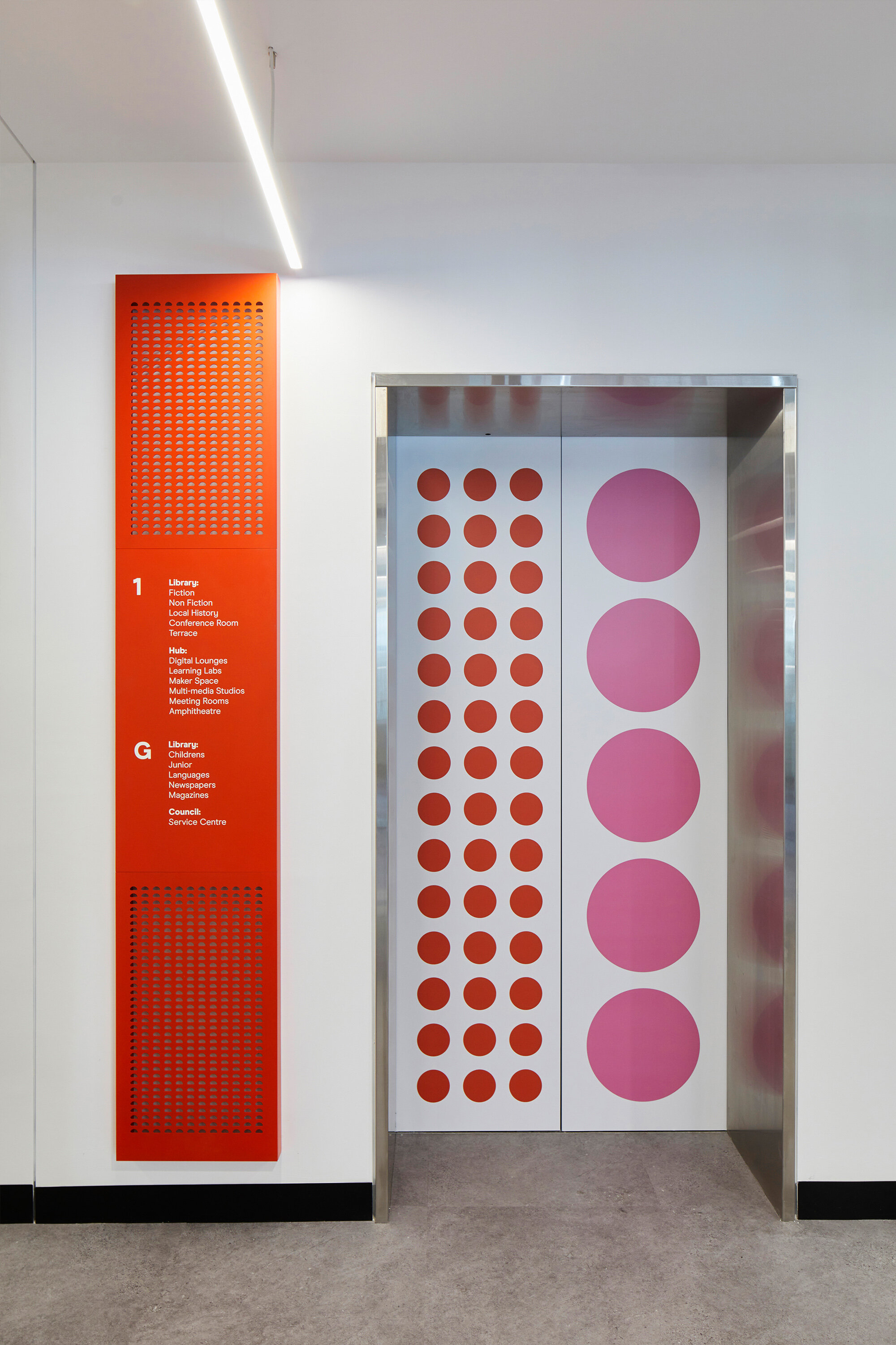 伯伍德议会和图书馆提供一个综合大楼,其中包括客户服务中心、理事会管理部门、社区图书馆和技术中心等设施,翻新后需要一套新的导视系统,CITIZEN设计团队受邀为其进行导视系统设计。